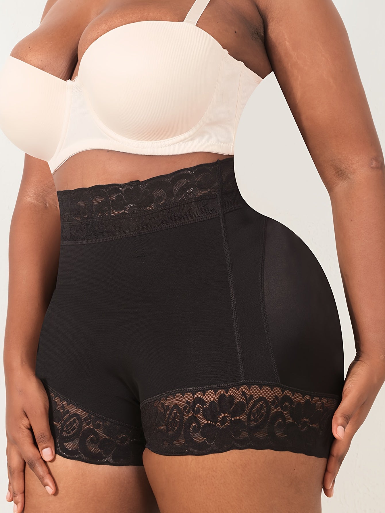 Plus Size High Waist Shapewear Shorts with Lace Trim Tummy Control Butt Lift