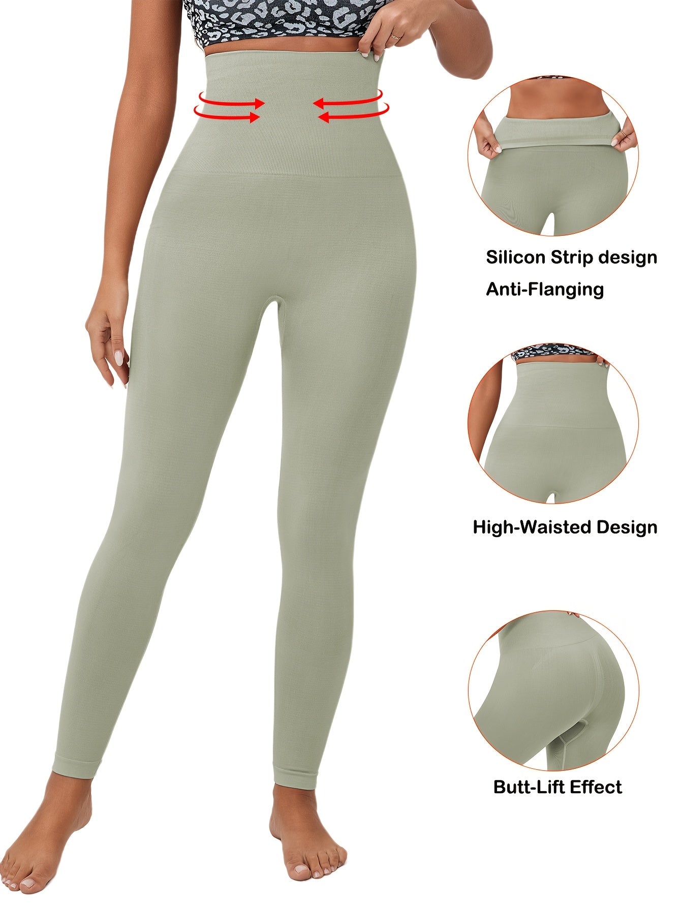 High-Waisted Yoga Pants Tummy Control Seamless Silicone Waistband Butt-Lift Solid Knit Fabric