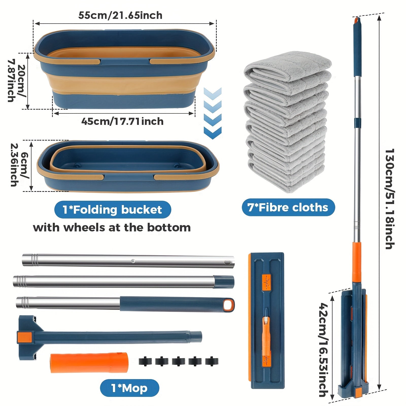 360° Rotating Microfiber Mop and Bucket Set for Wet Dry Cleaning with 7 Pads