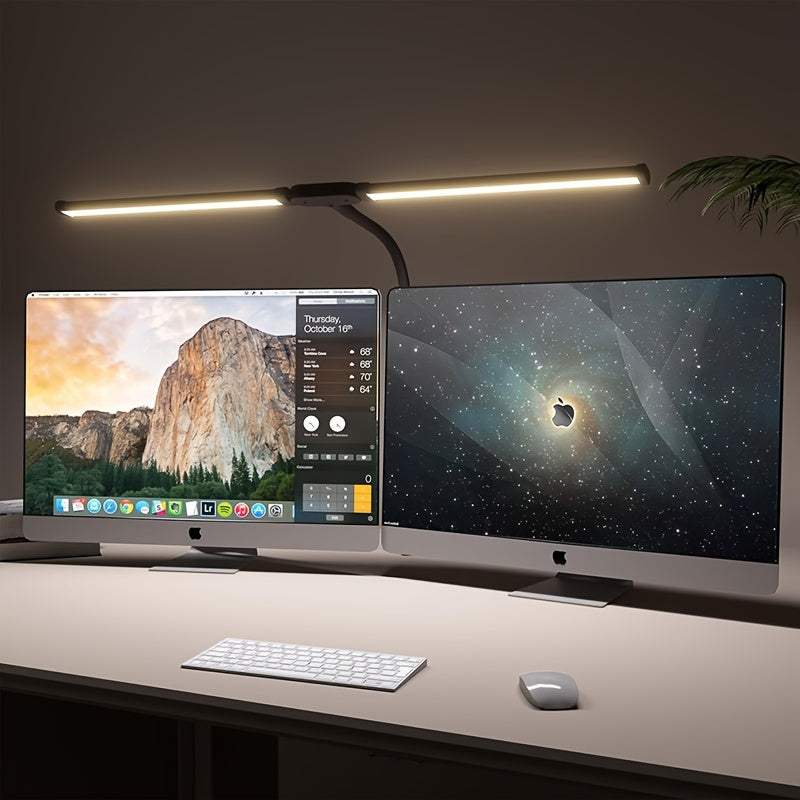 Home Office Desk Lamp with Double Head Clamp 15W LED Light 30 Lighting Modes Black