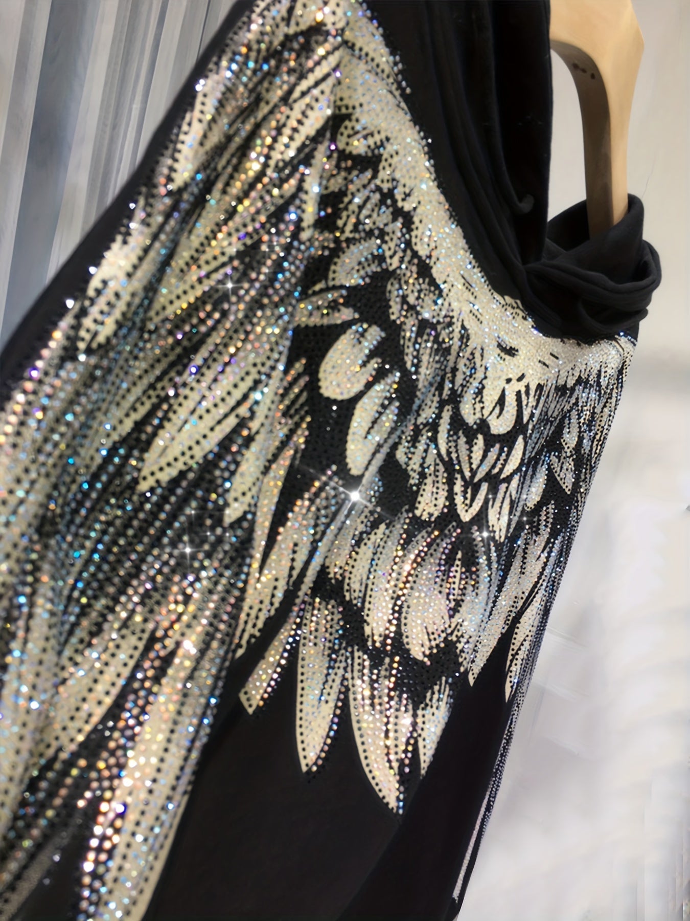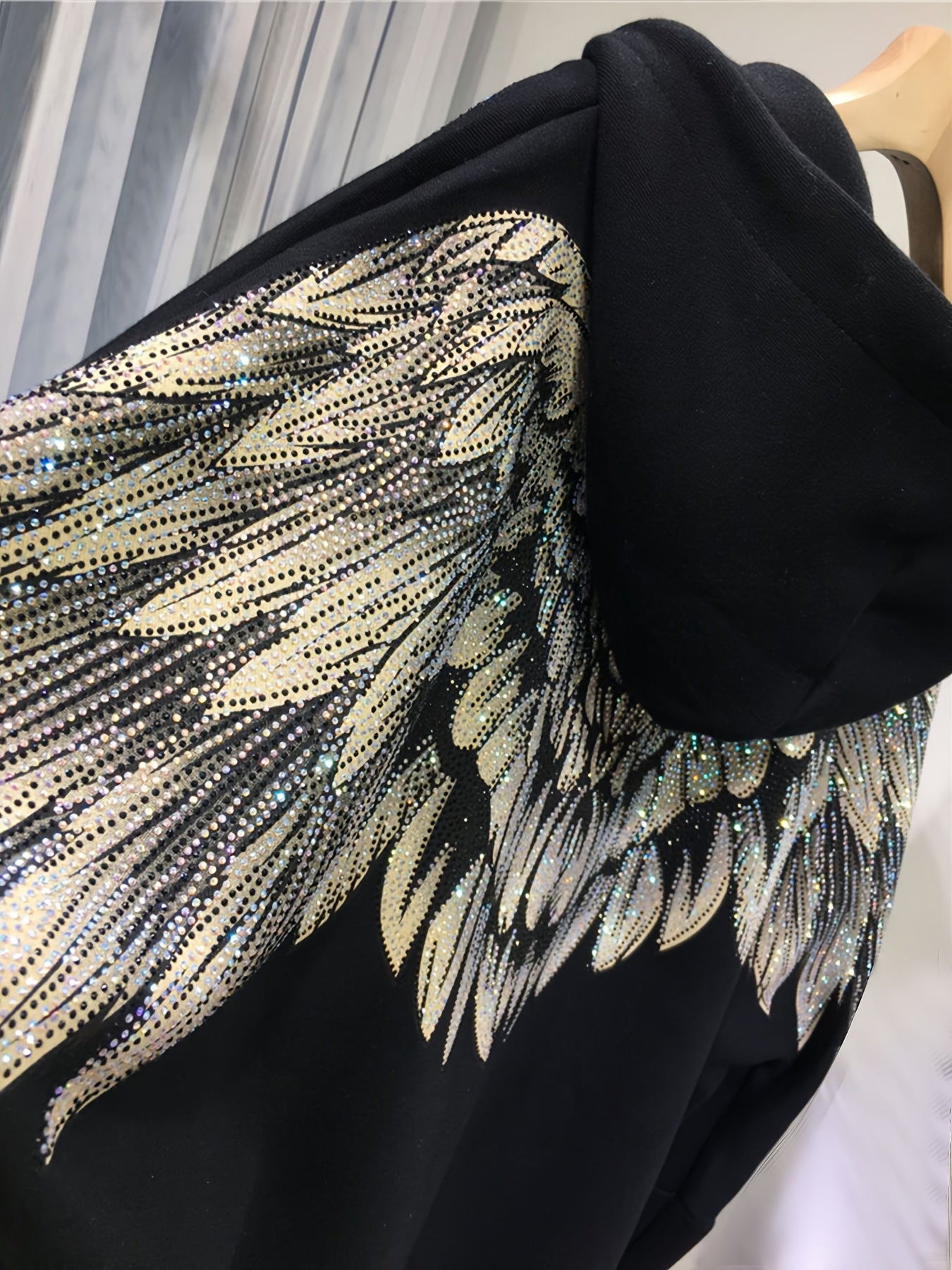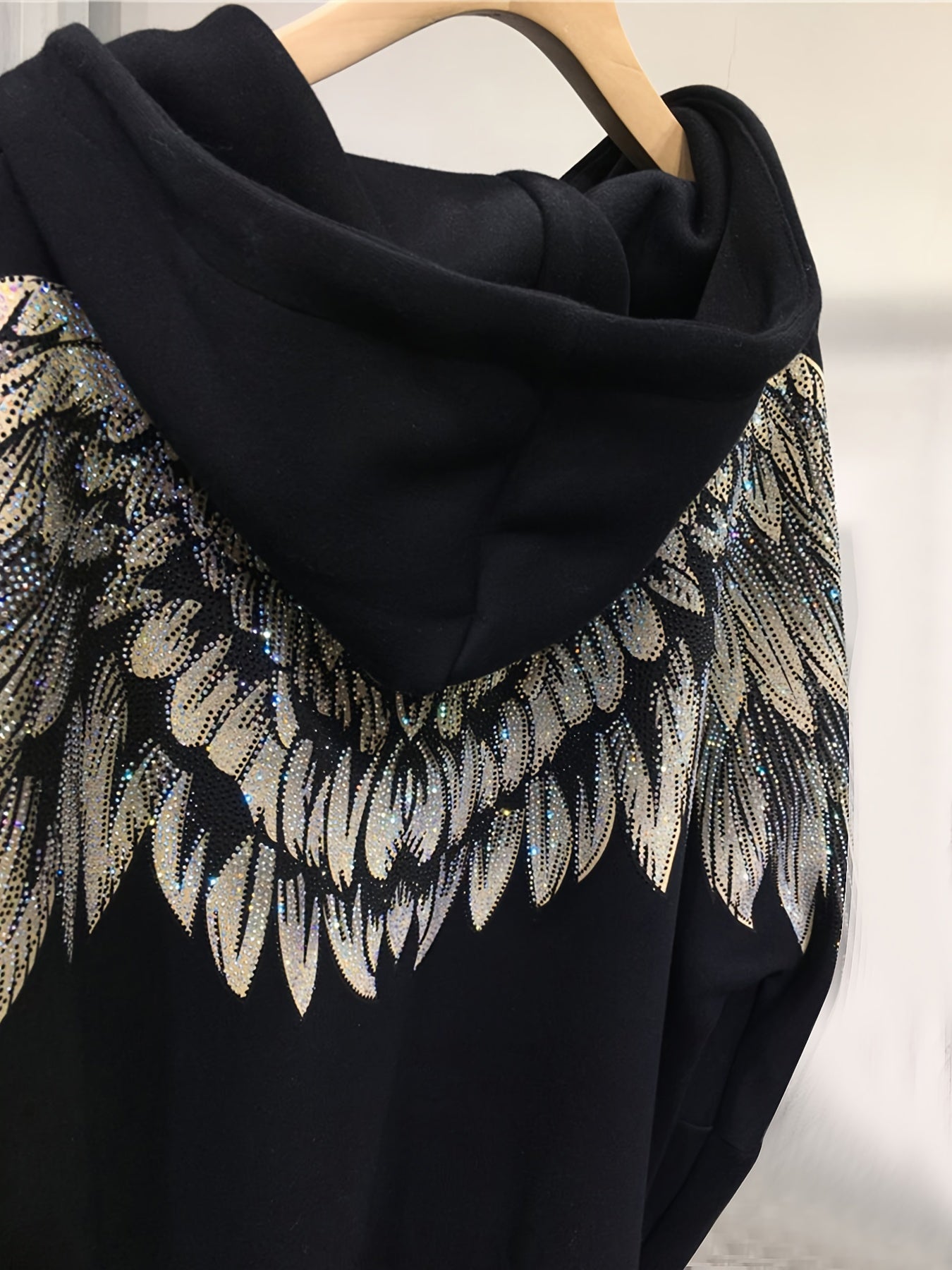 Plus Size Hooded Sweatshirt for Women with Rhinestone Embellishments Casual Spring Fall
