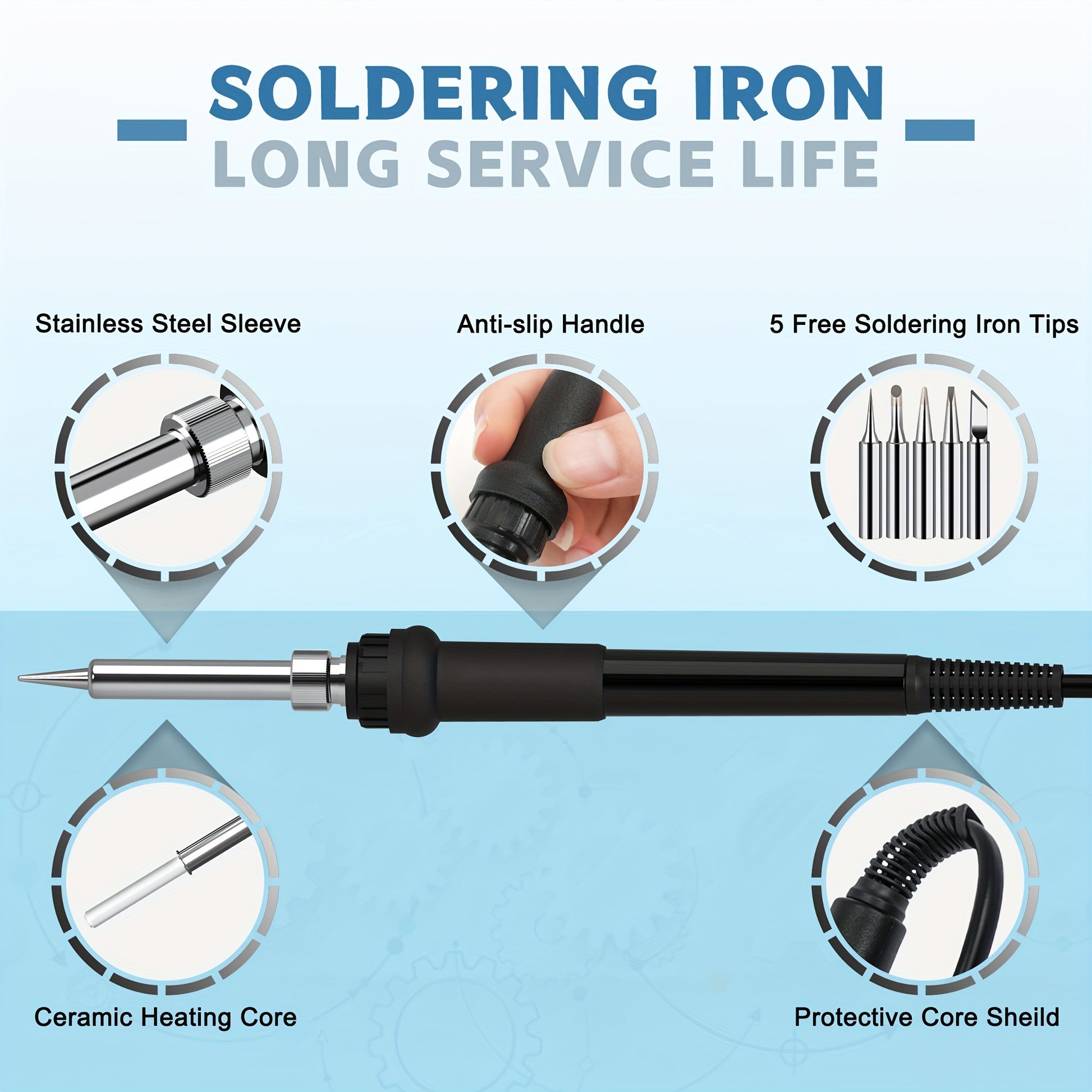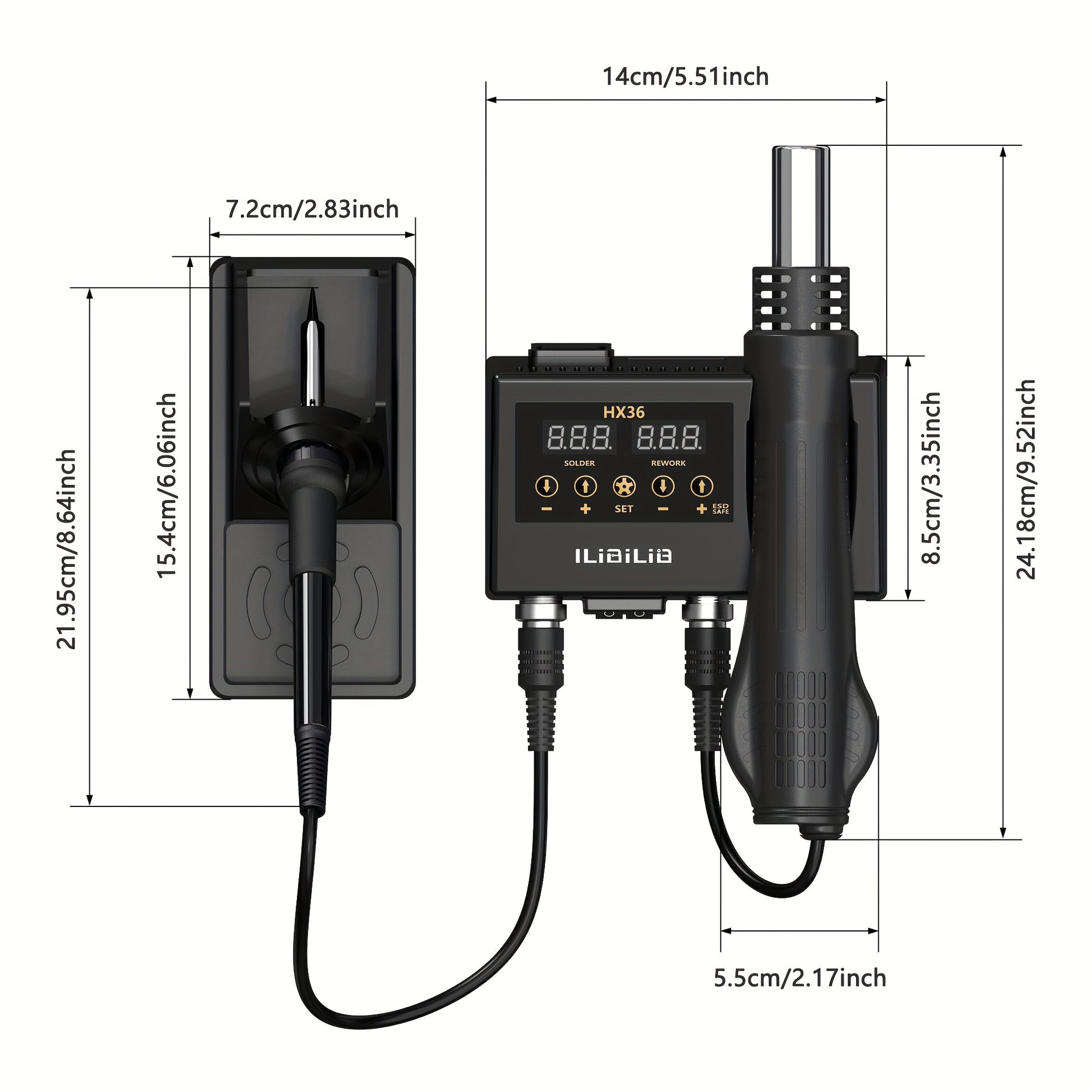 2-in-1 Rework Soldering Station Kit with Hot Air and Iron, Digital Temperature Control, 3 Nozzles, Anti-Static Tweezers, Slip-Resistant Design