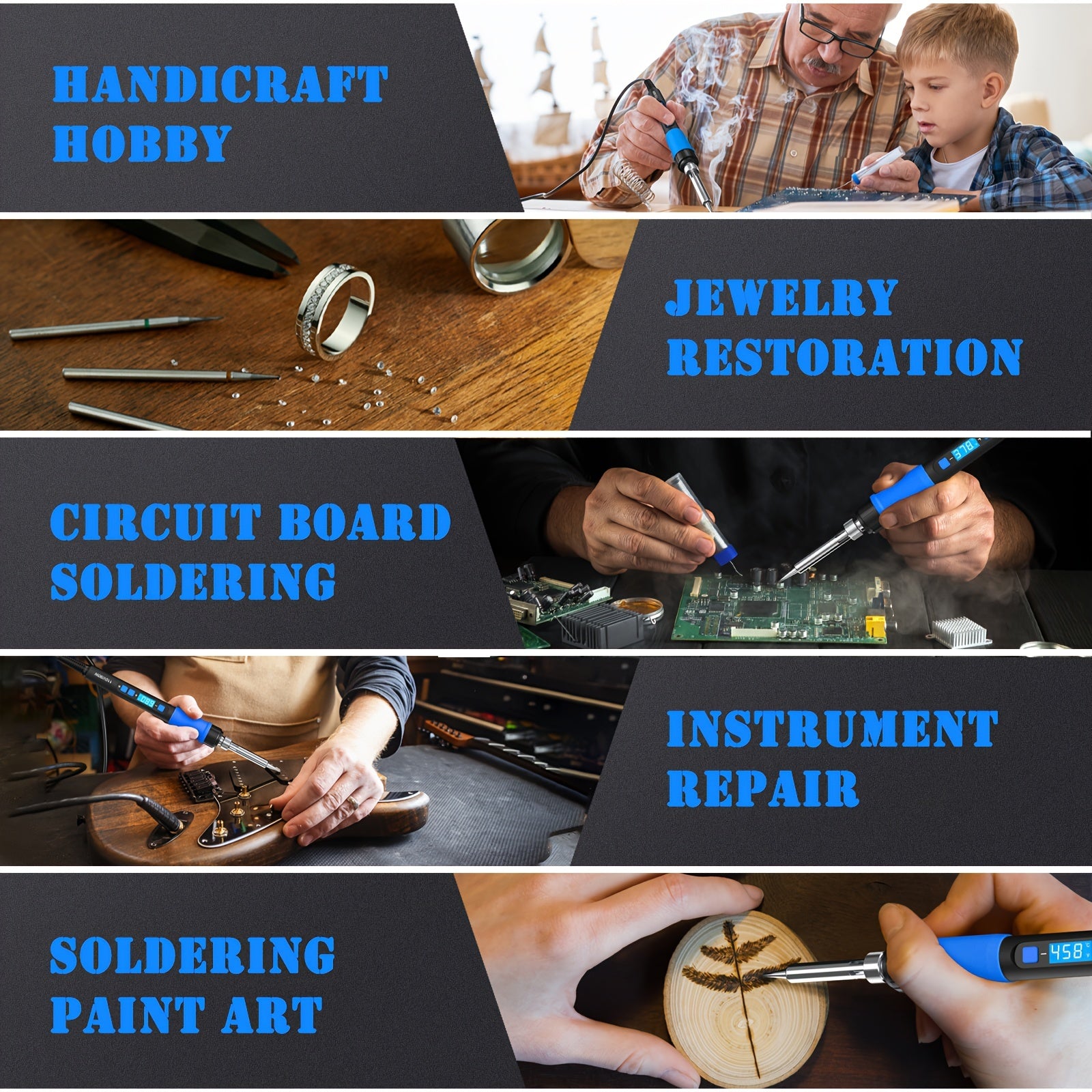 90W Digital Soldering Iron Kit with LCD Display Adjustable Temperature Rapid Heat Blue