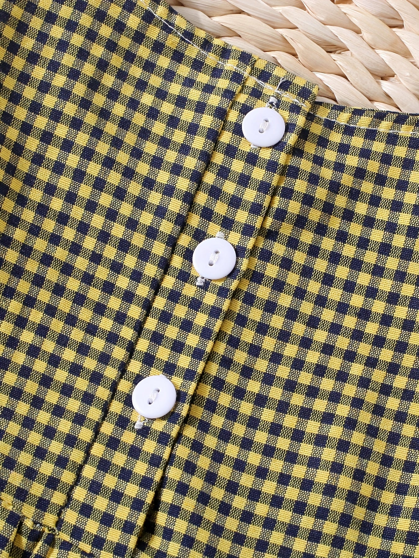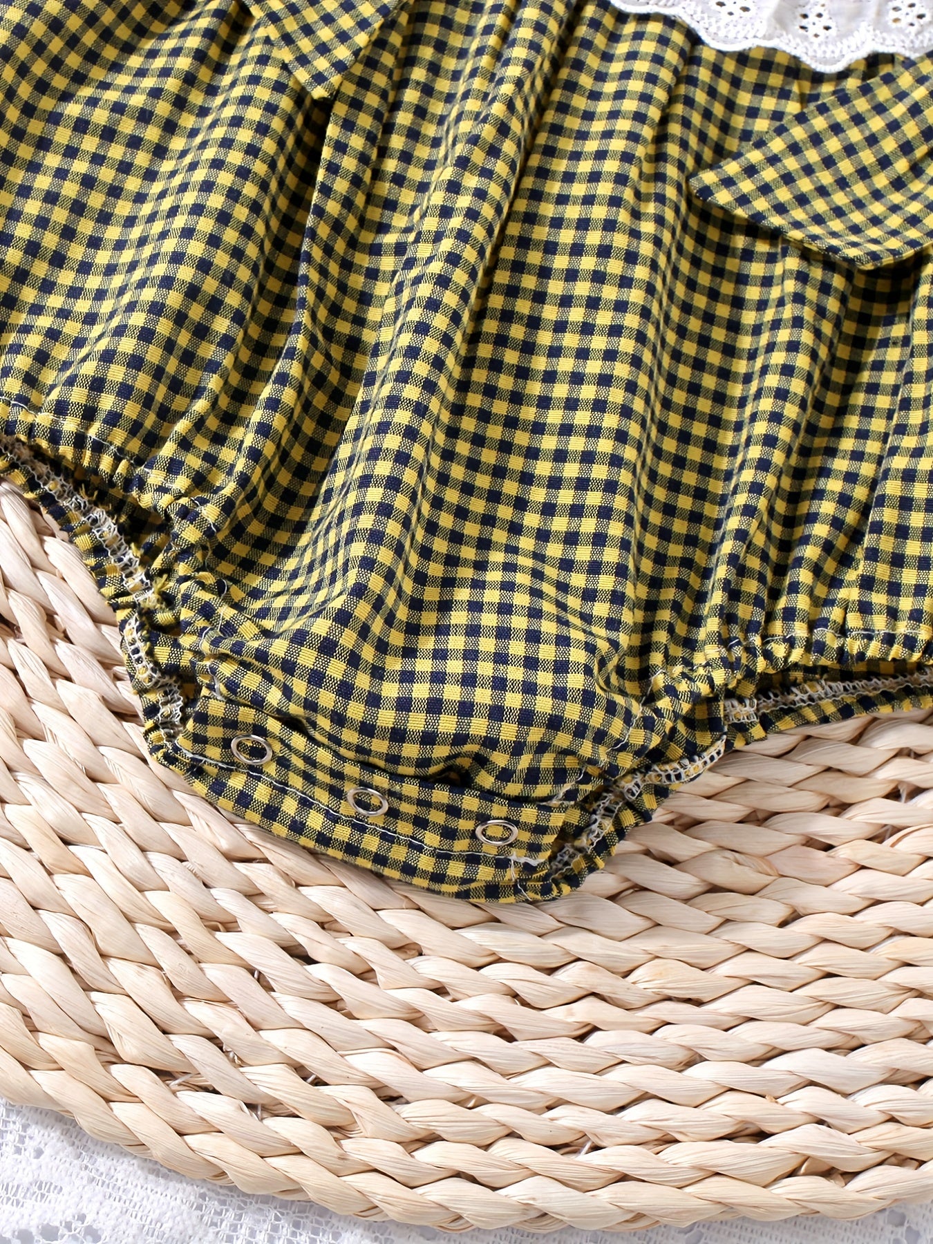 Baby Girls Plaid Onesie with Strawberry Embroidery and Bow Details for Casual Outdoor Wear