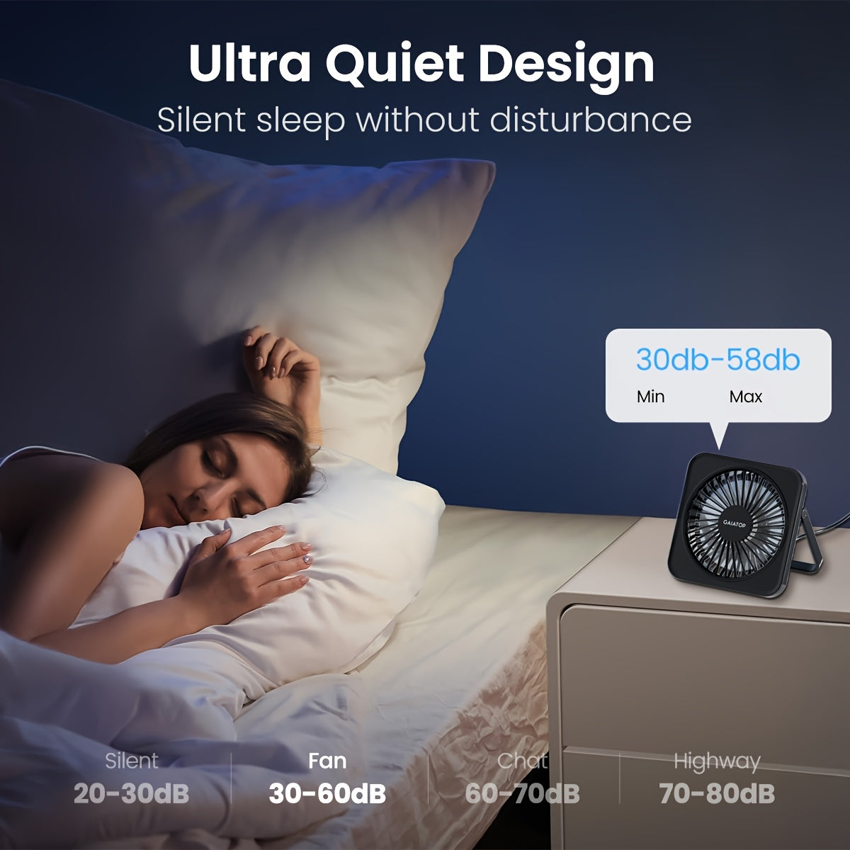 Compact 13.97cm Black Desktop Fan USB Powered Silent 3-Speed Adjustable