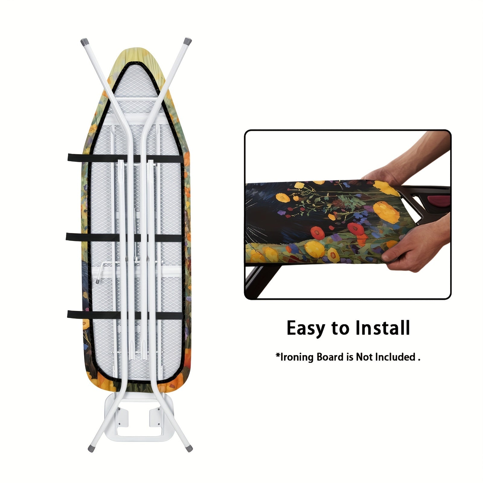 Ironing Board Cover with Elastic Edge Black Cat Floral Print Standard Size Dust-Proof Protector