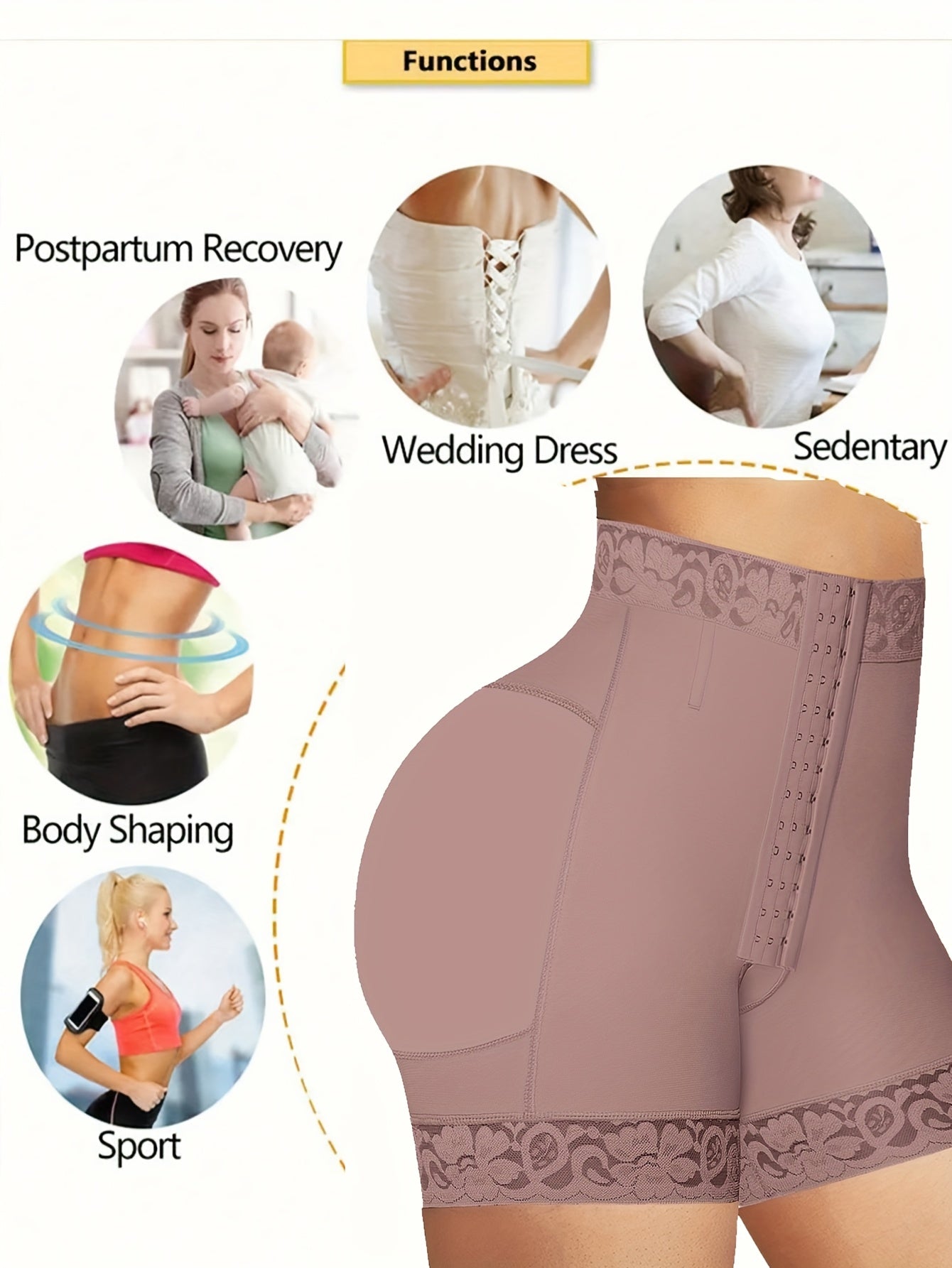Women’s Beige High-Waisted Shapewear Shorts with Tummy Control and Butt Lifter