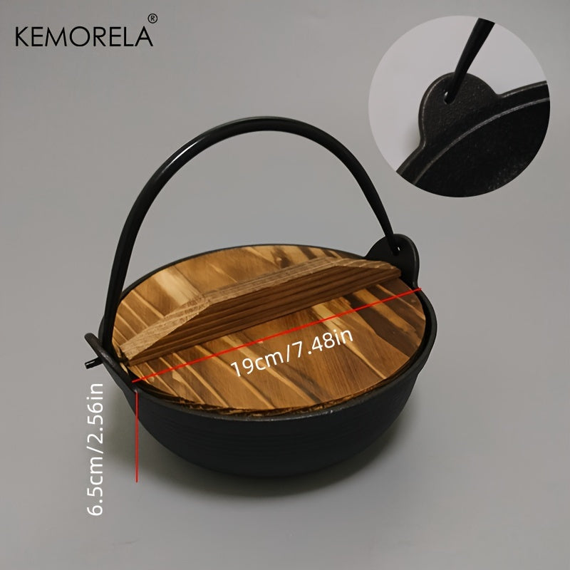 Cast Iron Stockpot with Wooden Lid, Non-Stick Sukiyaki Pot, Outdoor Camping Cookware