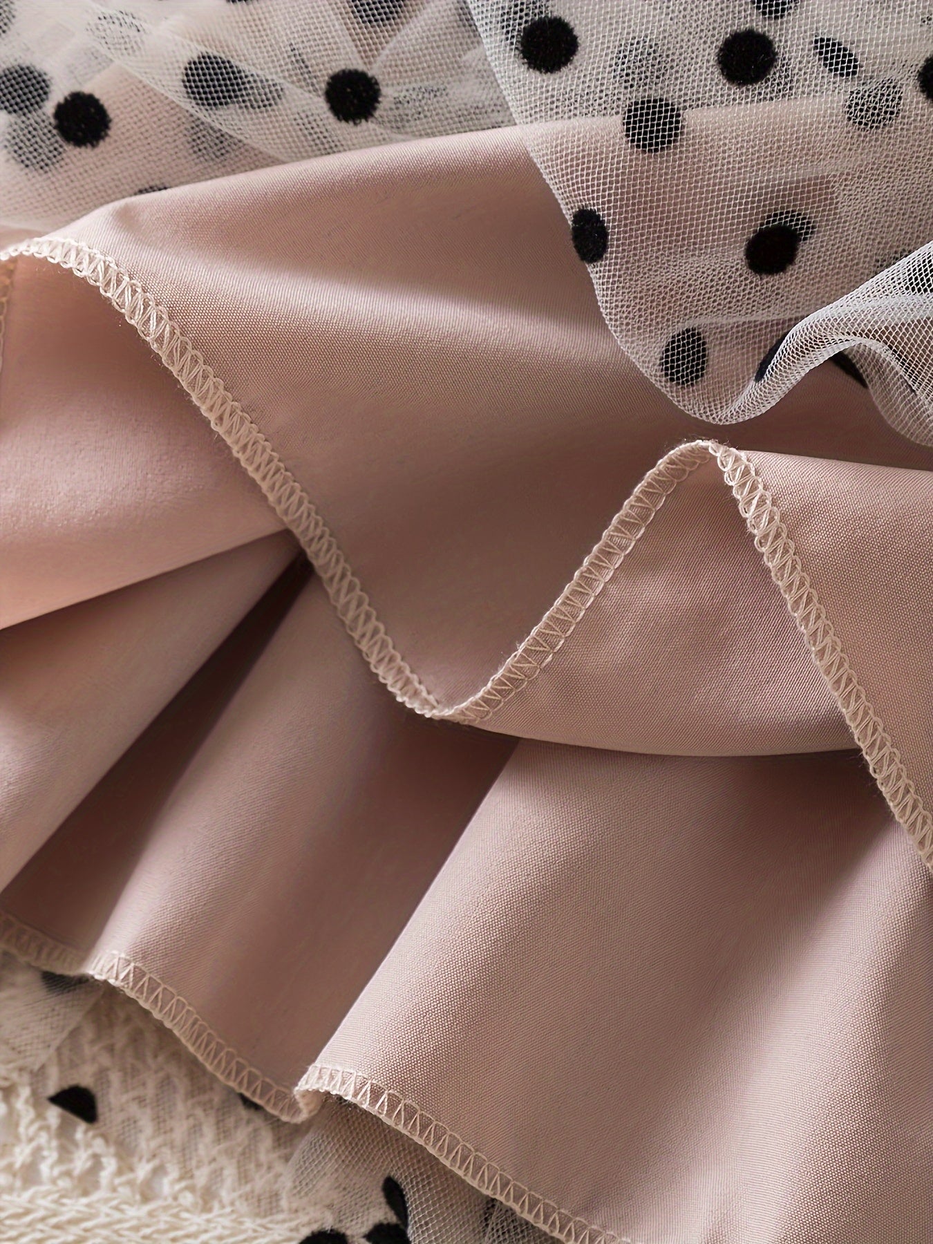 Kids Girls Summer Polka Dot Tulle Princess Dress A-Line Fairy Style Button Accents Non-Stretch Polyester