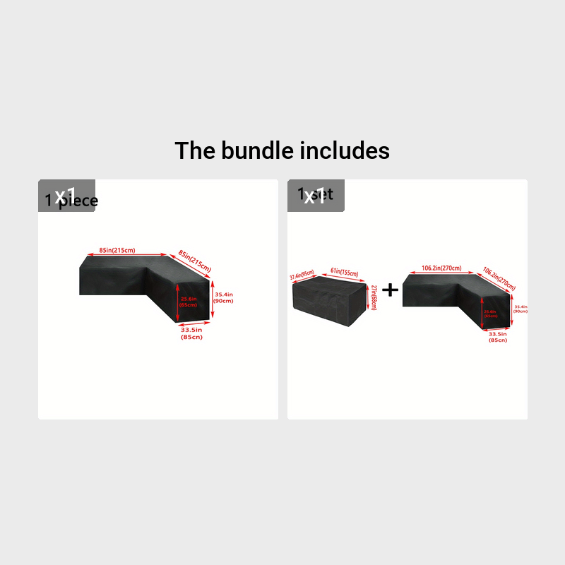 L-Shaped Outdoor Sofa Cover Waterproof Patio Furniture Protector Black Drawstring