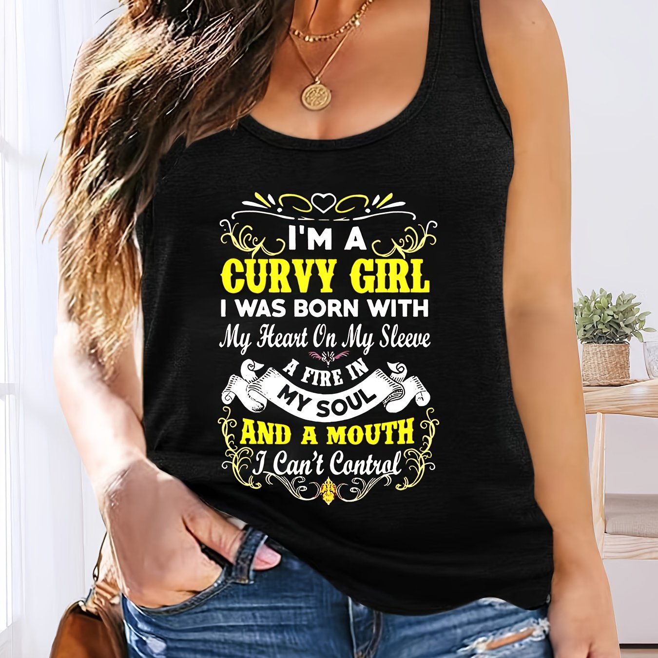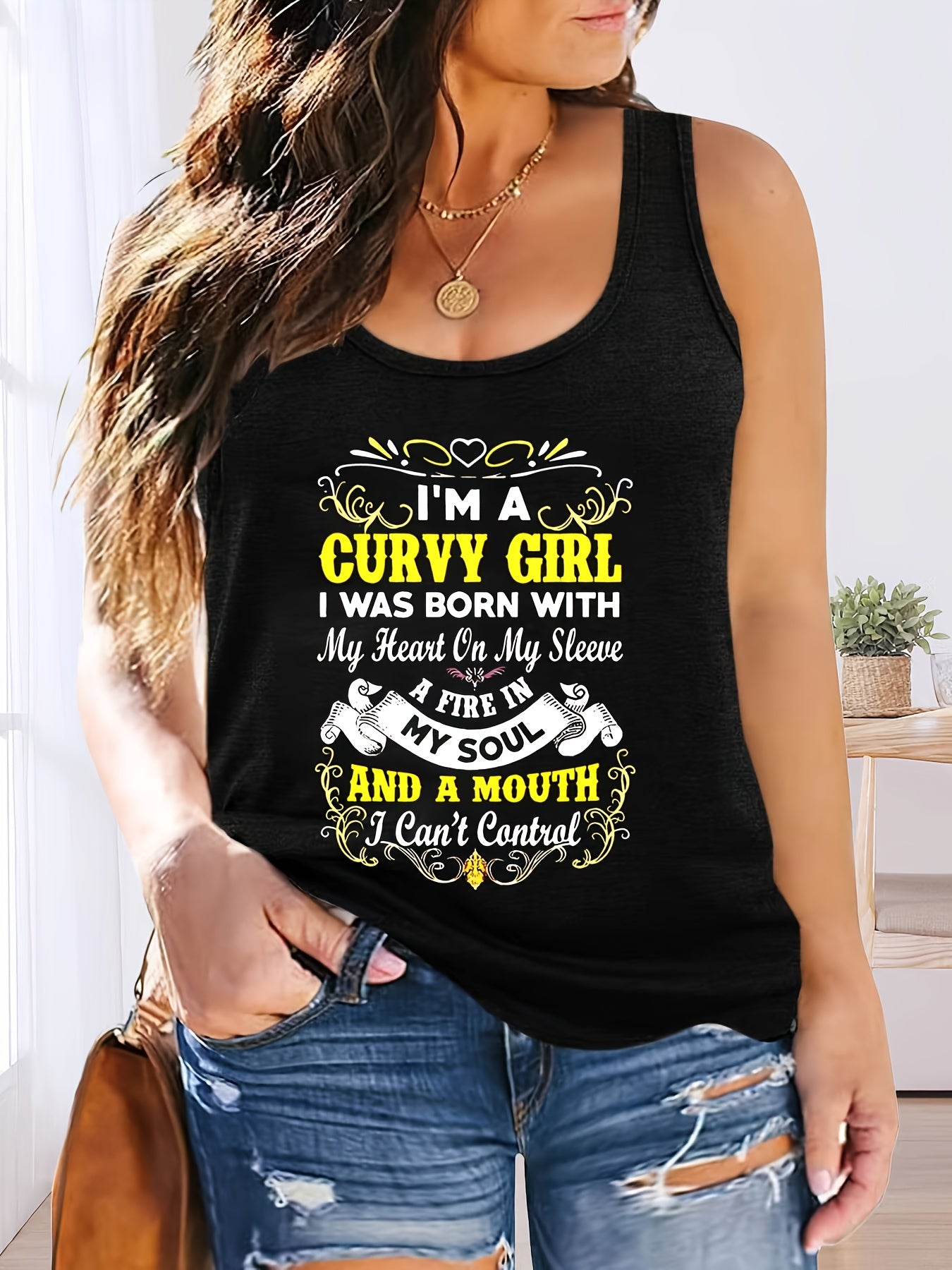 Ladies Plus Size V-Neck Vest Top with Stretch Casual Solid
