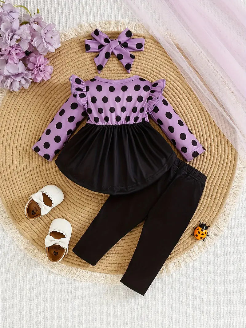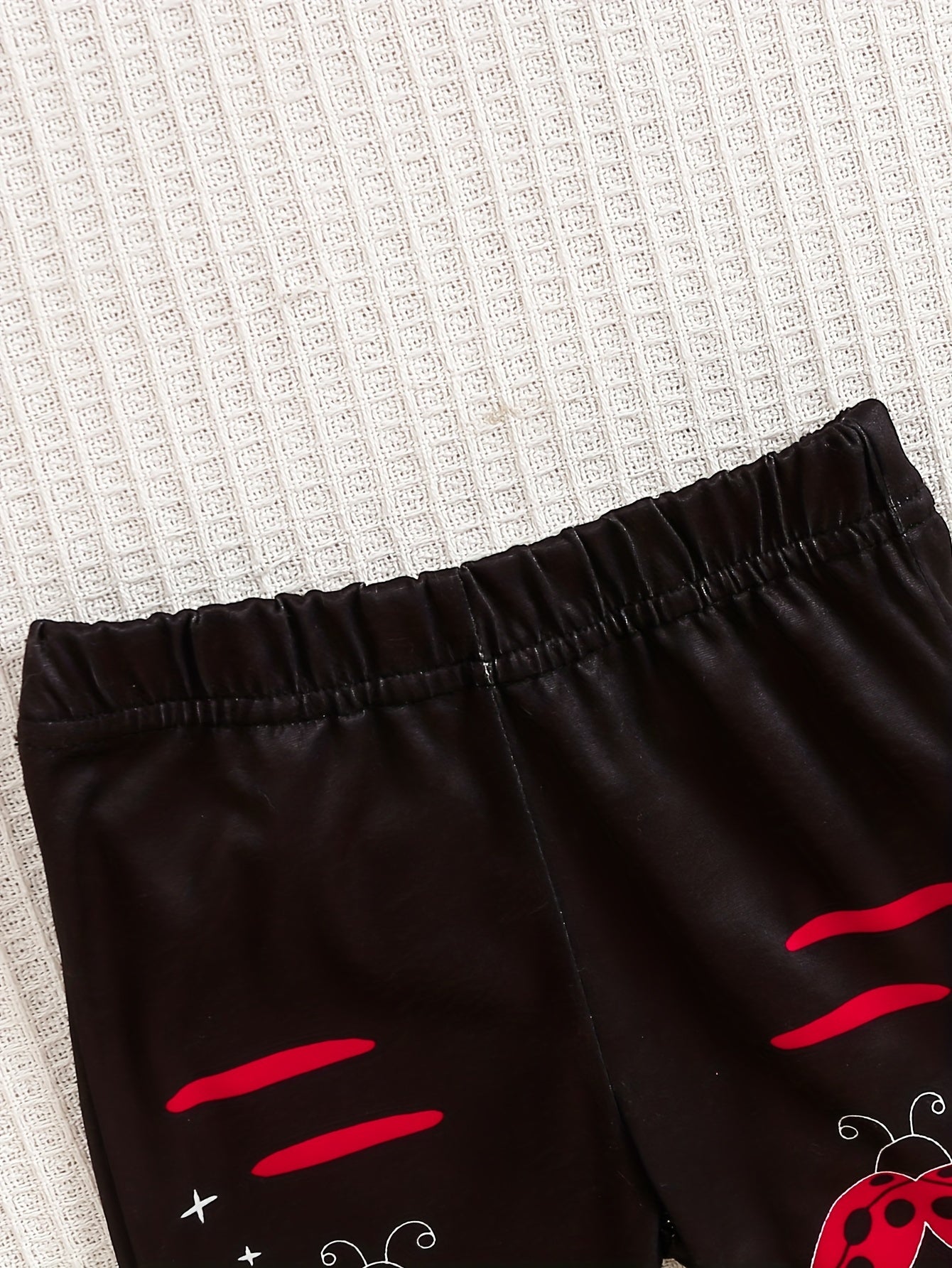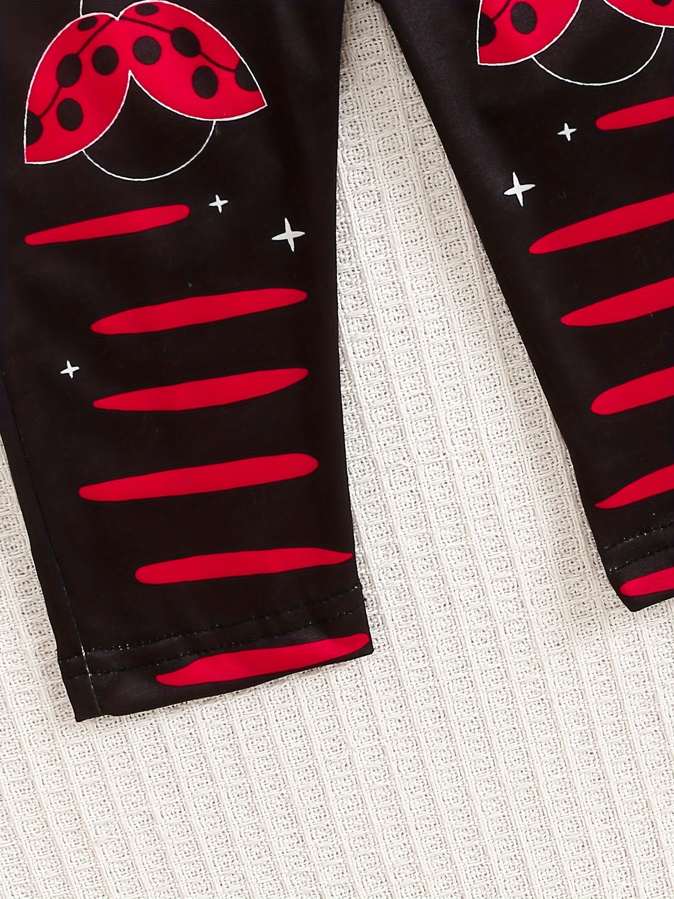 Toddler Girl Ladybug Print Polyester Outfit with Long Sleeve Crew Neck Pullover and Pants