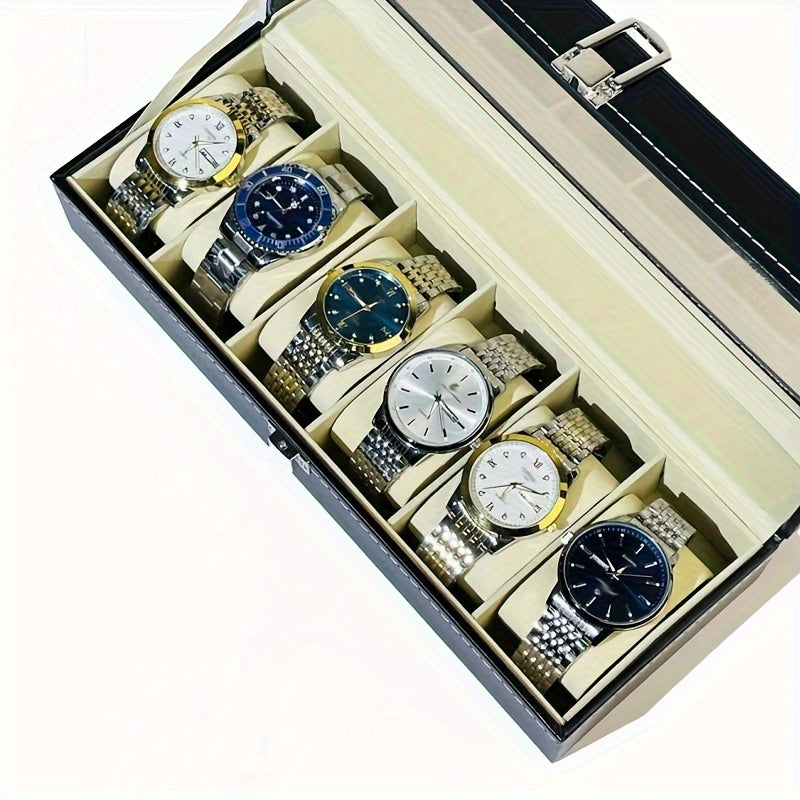 Large Capacity Watch Storage Box with 6 Slots for Men and Women