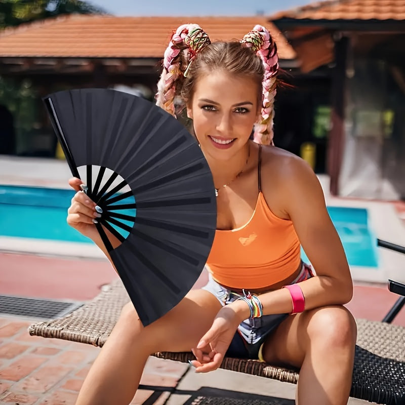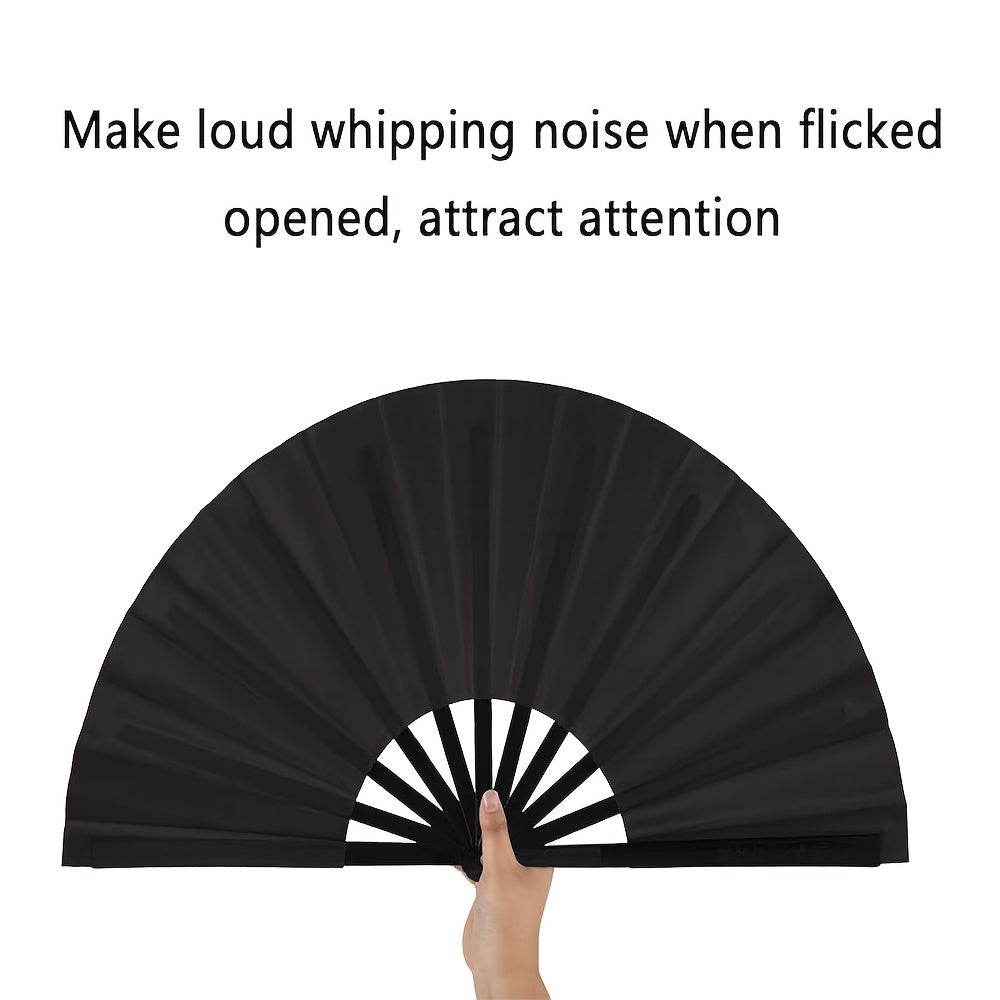 Black Folding Fan Set 2 Pieces Handheld Nylon Cloth Chinese Kung Fu Festival Party Favors