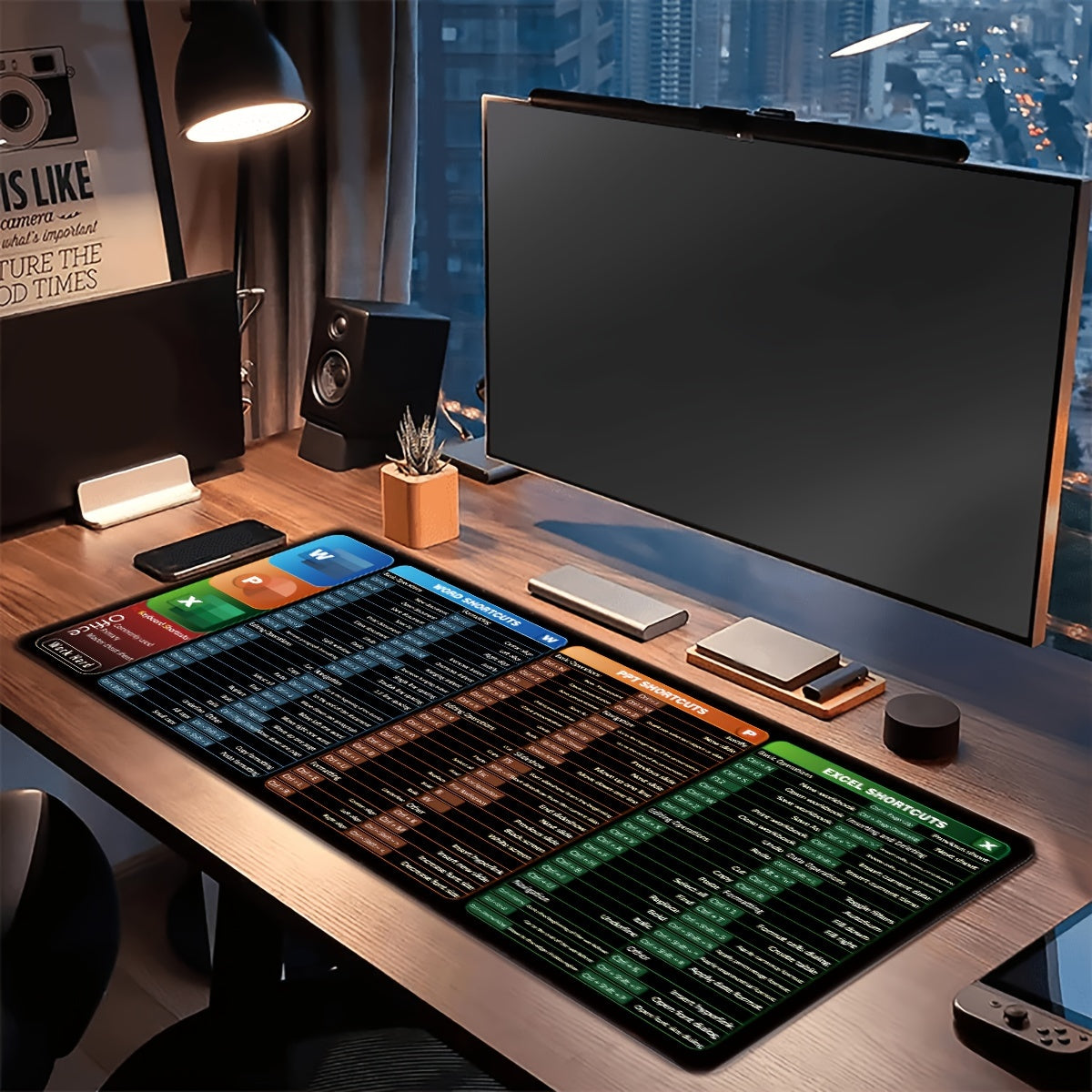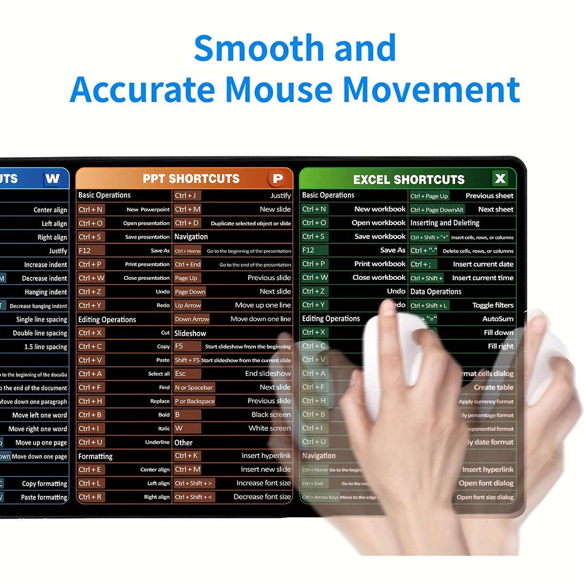 Large Non-Slip Washable Mouse Pad with Printed Shortcuts for Word Excel PowerPoint Gaming