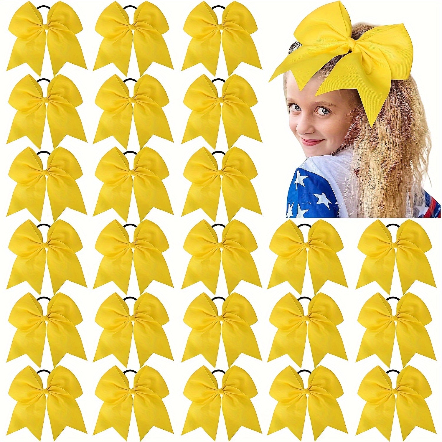 Set of 24 Bohemian-Style Cheer Bows with Black Elastic Ties for Girls