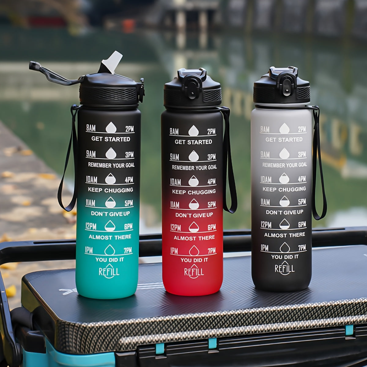 32oz Leak-Proof Gradient Water Bottle with Carry Strap for Hiking and Active Use