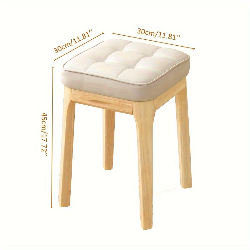 Solid Wood Soft Leather Stackable Square Stool for Living Room or Dressing