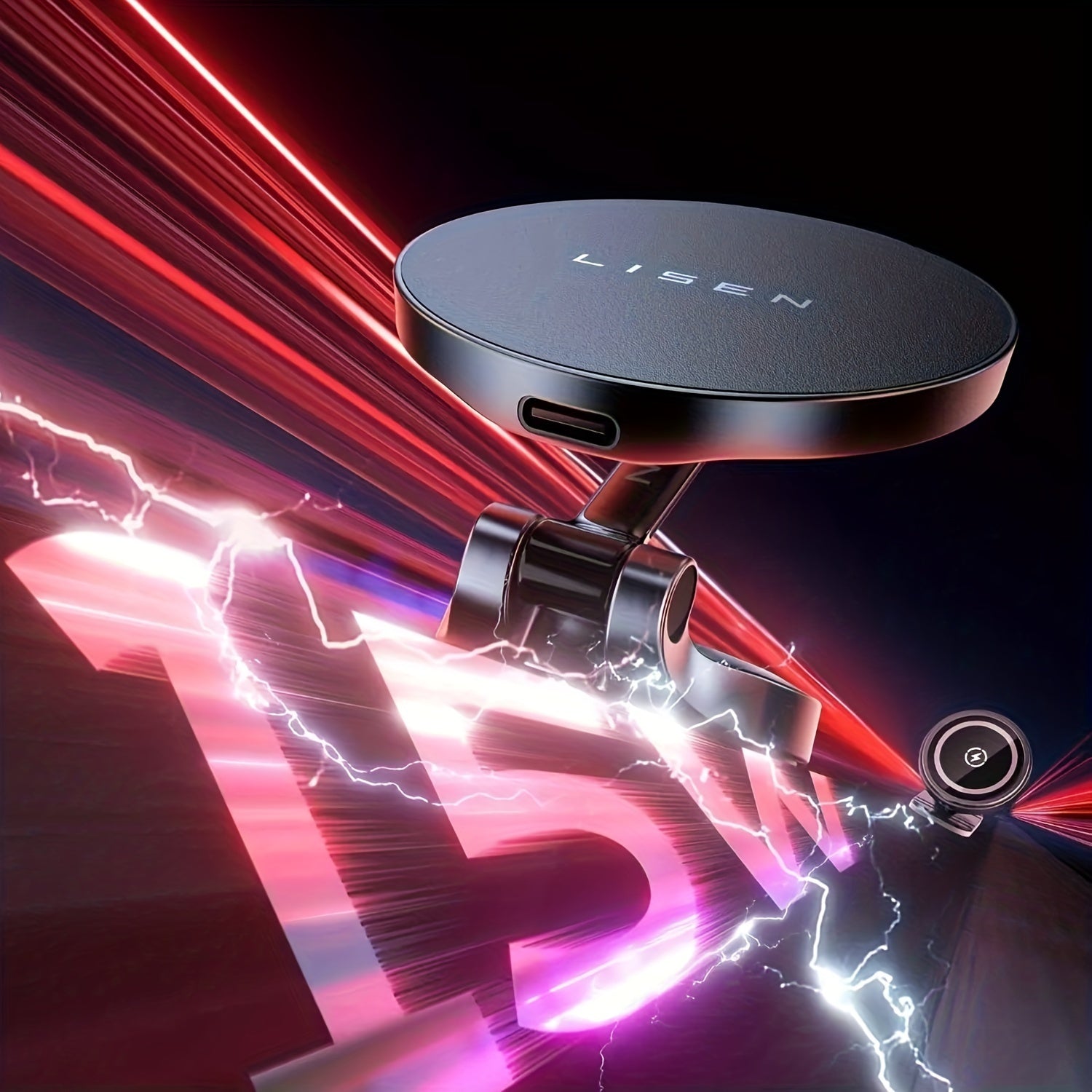 Magnetic Car Mount Charger 15W Fast Wireless Charging for iPhone 12-15 Pro Max Zinc Alloy Dashboard Holder