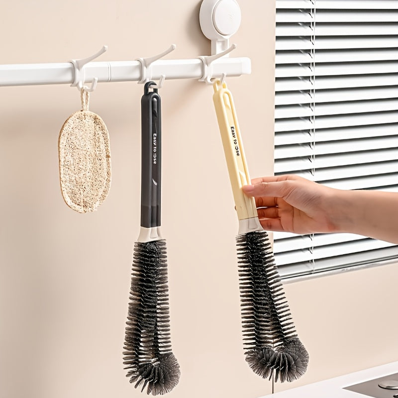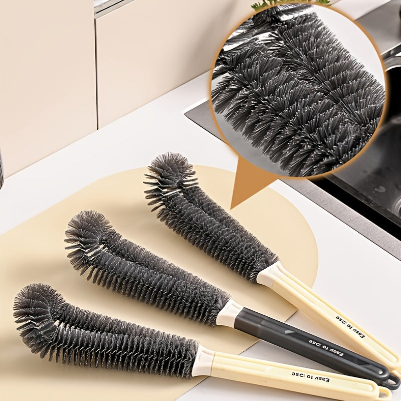 Long Handle Cup Brush and Tea Stain Remover, Durable Plastic Stainless Steel Kitchen Cleaning Tool