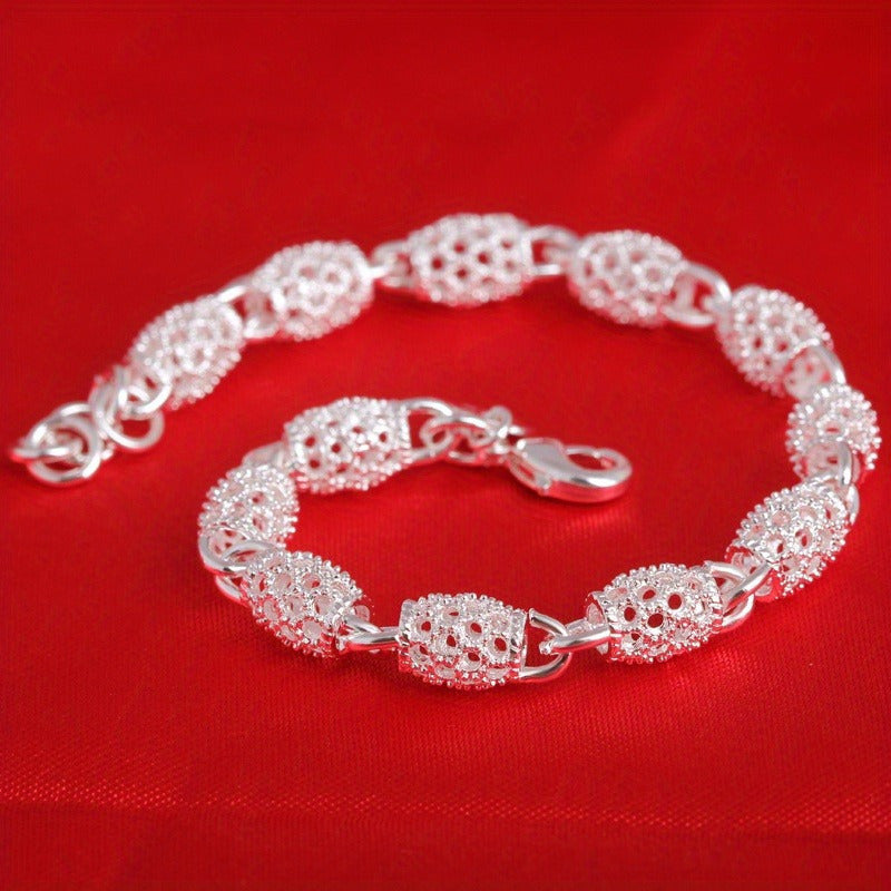 Sterling Silver Bead Bracelet for Women Classic Elegant Jewelry Gift Box Included