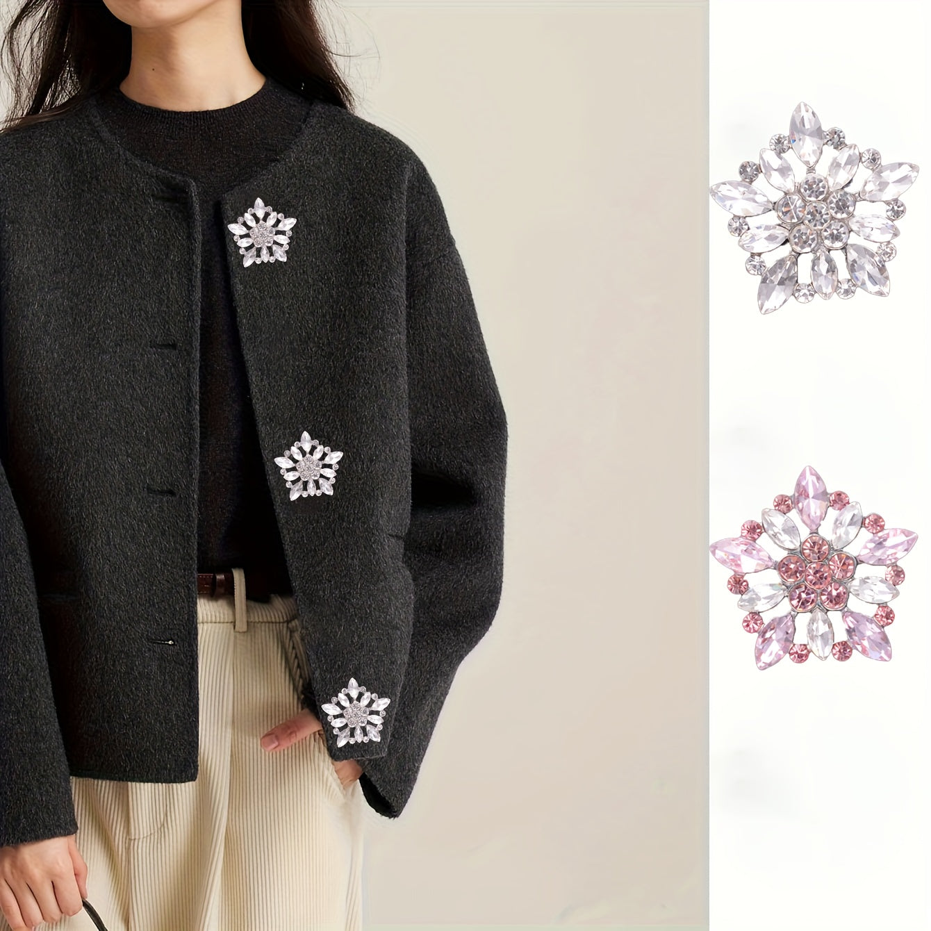 Crystal-Encrusted Metal Buttons Set of 3 or 5 for Clothing, Crafts, Gift Wrapping