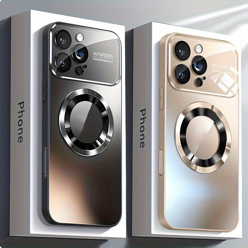 Matte Titanium Phone Case for iPhone with Magnetic Wireless Charging and Shockproof Camera Lens Protection
