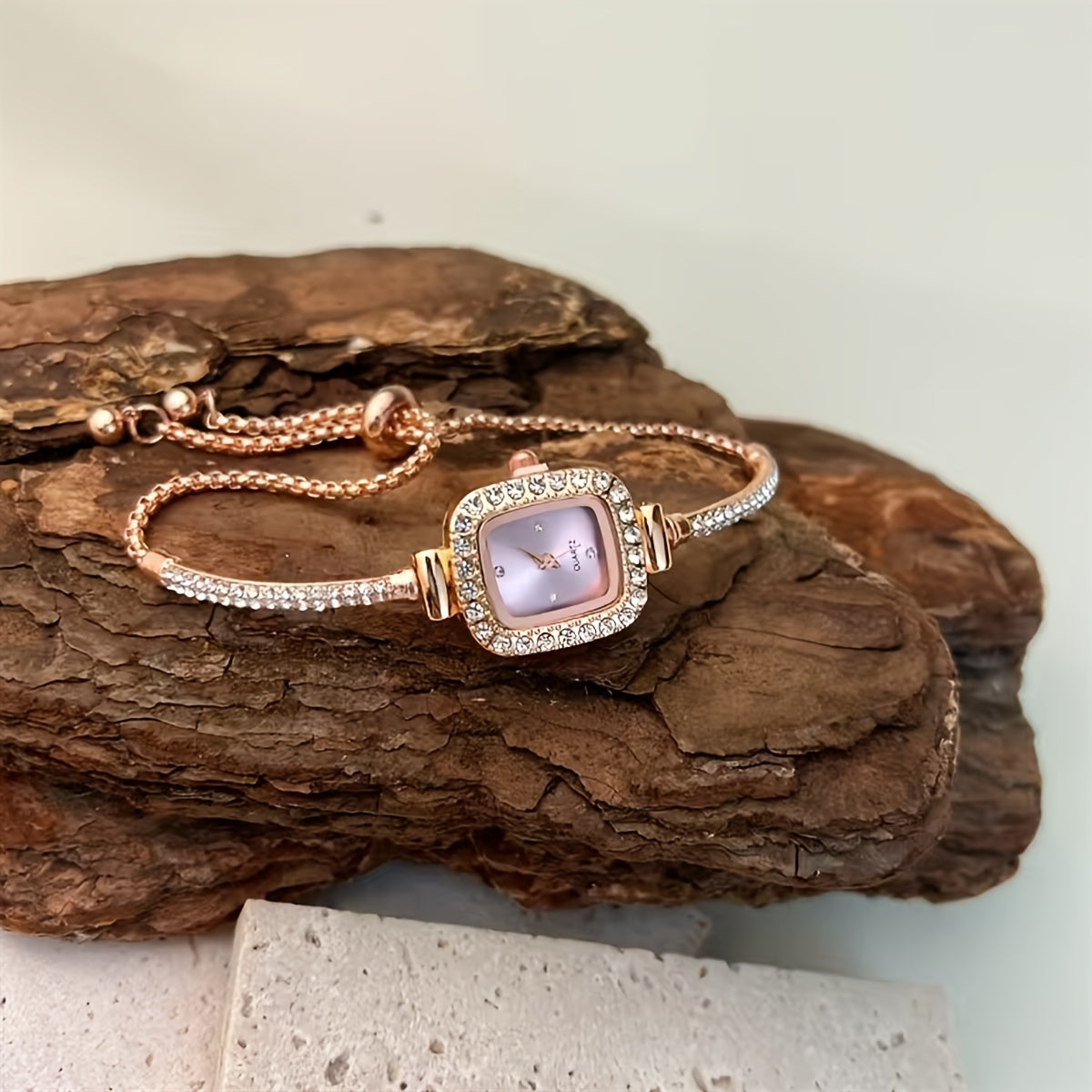 Women's Rhinestone Quartz Watch Square Dial Shiny Bracelet Wristband