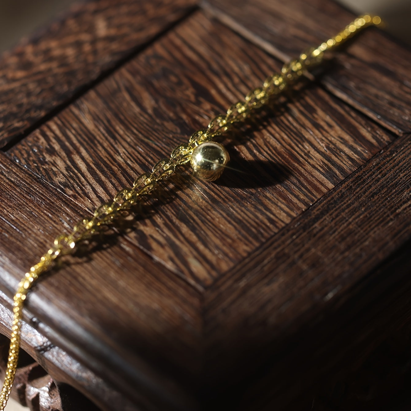 Sterling Silver Bead Chain Bracelet for Women with 18K Gold Plating Adjustable Jewelry