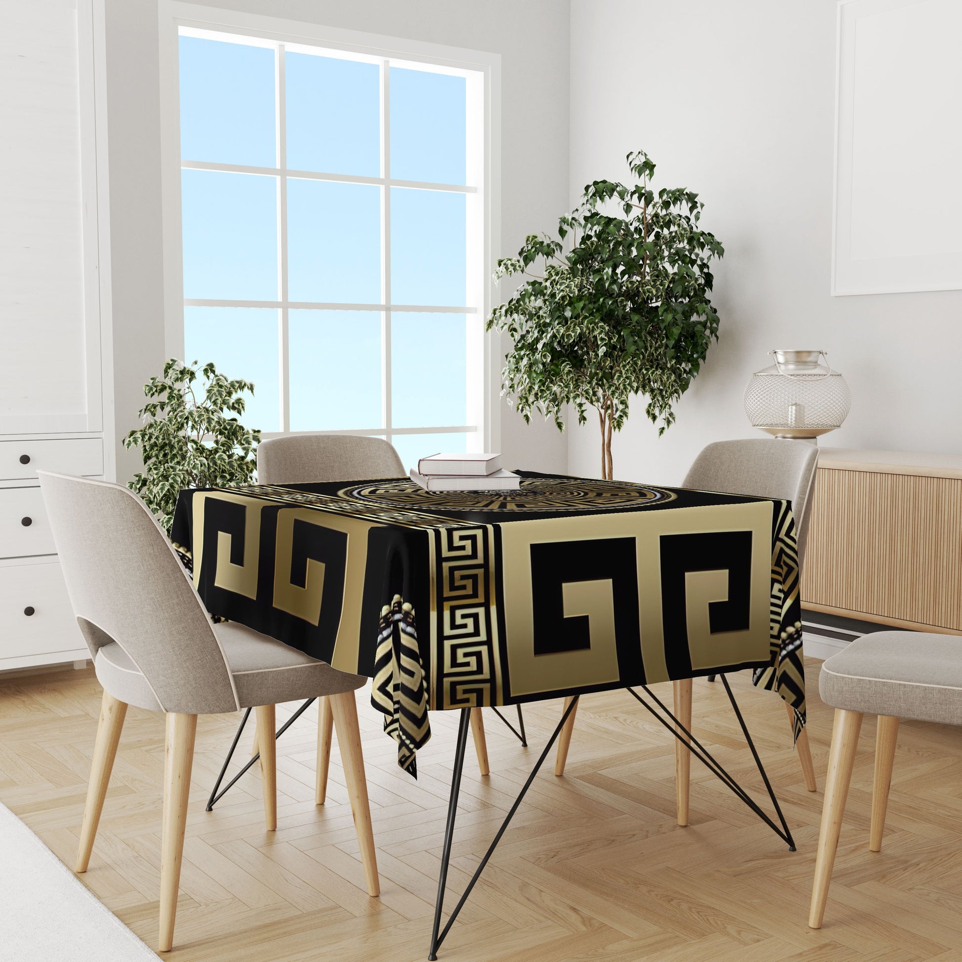 Black and Gold Greek Geometric Rectangle Tablecloth 88.9x139.7cm 139.7x198.12cm