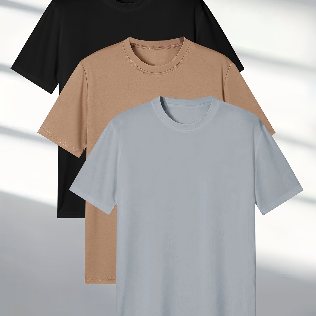 Men's Short Sleeve T-Shirt Set 3 Pieces Solid Polyester Casual All Seasons