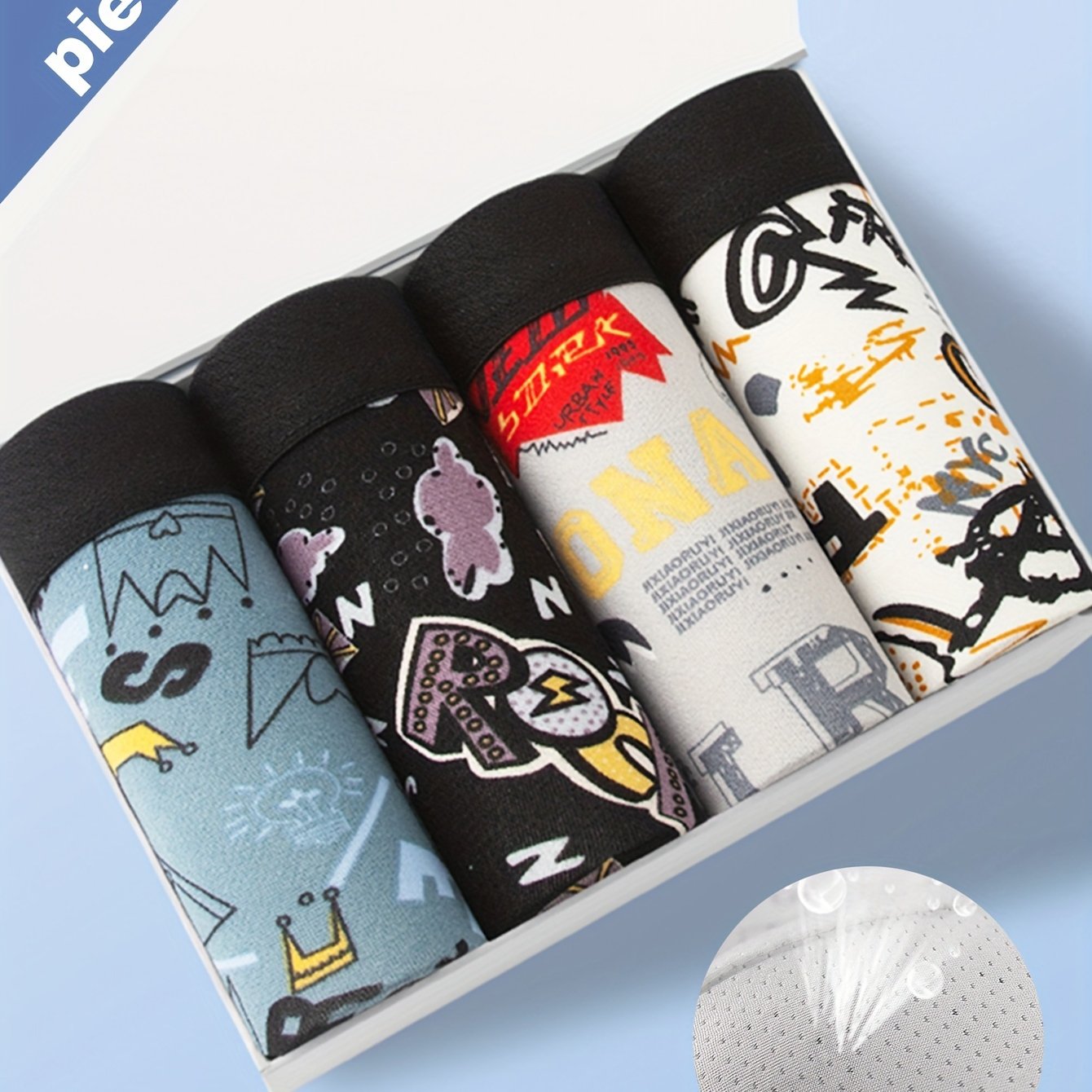 Men's Boxer Briefs 4 Pack Breathable Stretch Random Print Casual Underwear