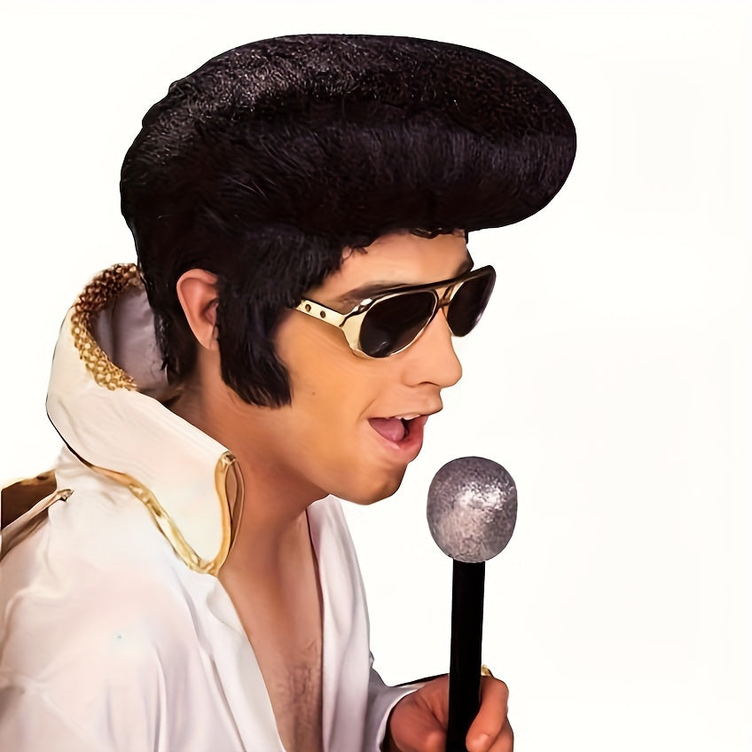 Men's Black Curly Wig for Cosplay and Halloween No Glue Needed Polyester