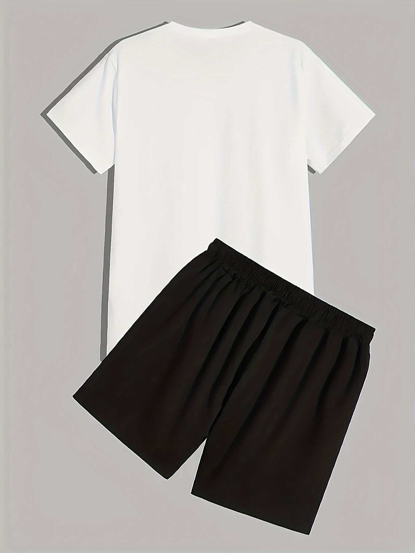 Men's Casual 2-Piece Pajama Set Short Sleeve T-Shirt Knee-Length Shorts Polyester Spandex All-Season