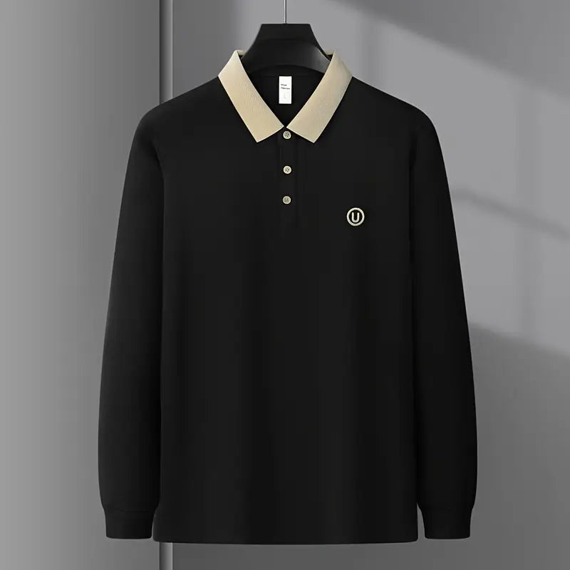 Men's Long Sleeve Golf Shirt with Embroidered Logo Collar Polyester Knit Medium Stretch Regular Fit Fall Collection