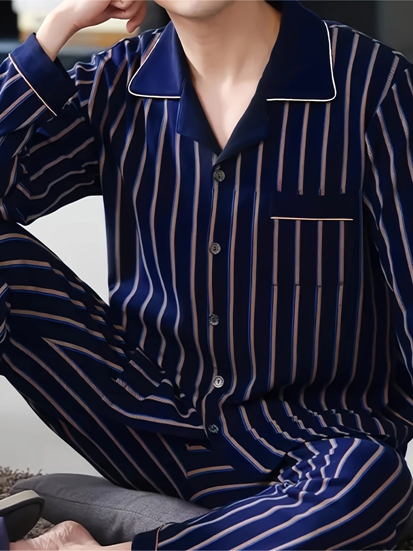 Men's Casual Pajama Set Polyester Knit Striped Fall Winter Regular Fit