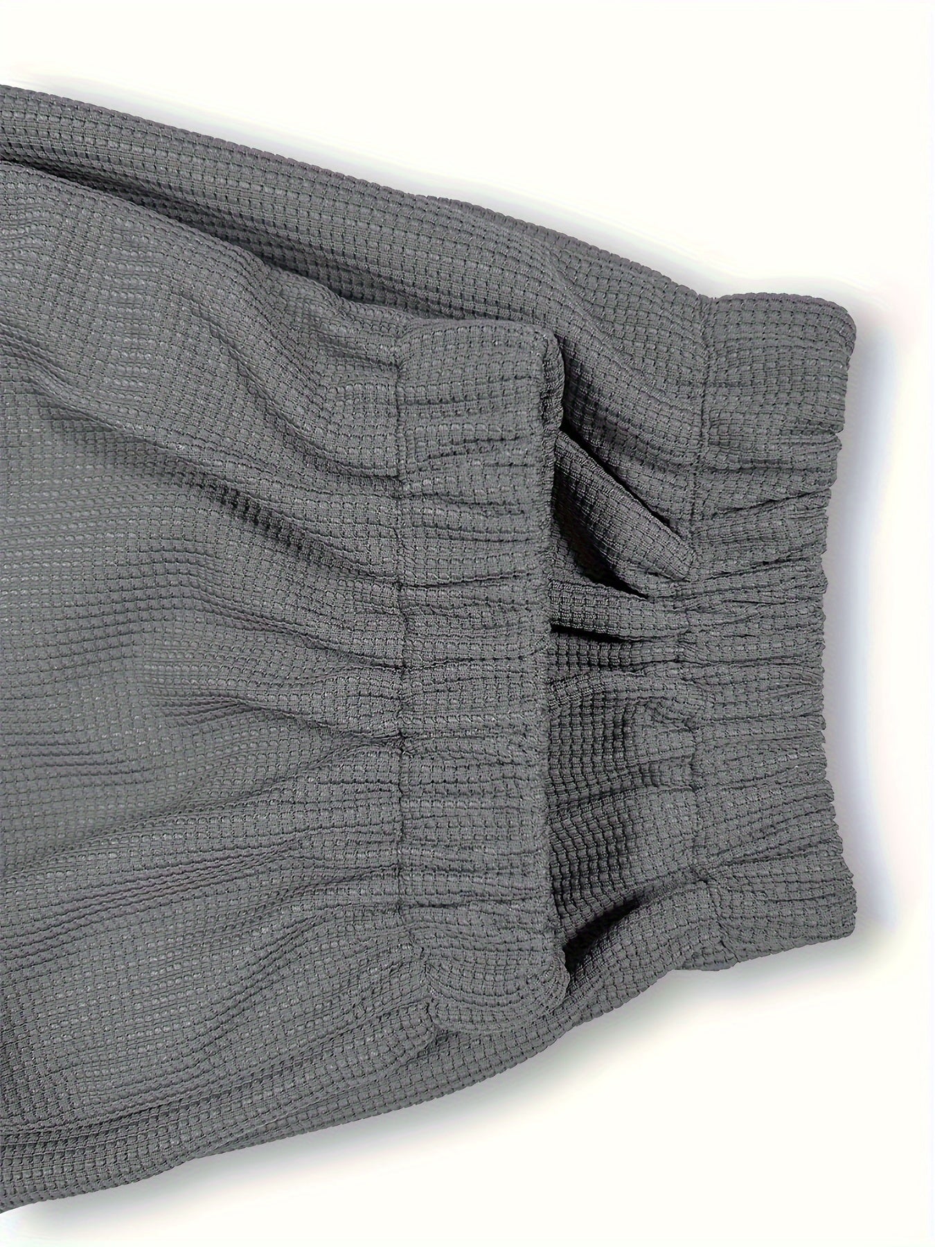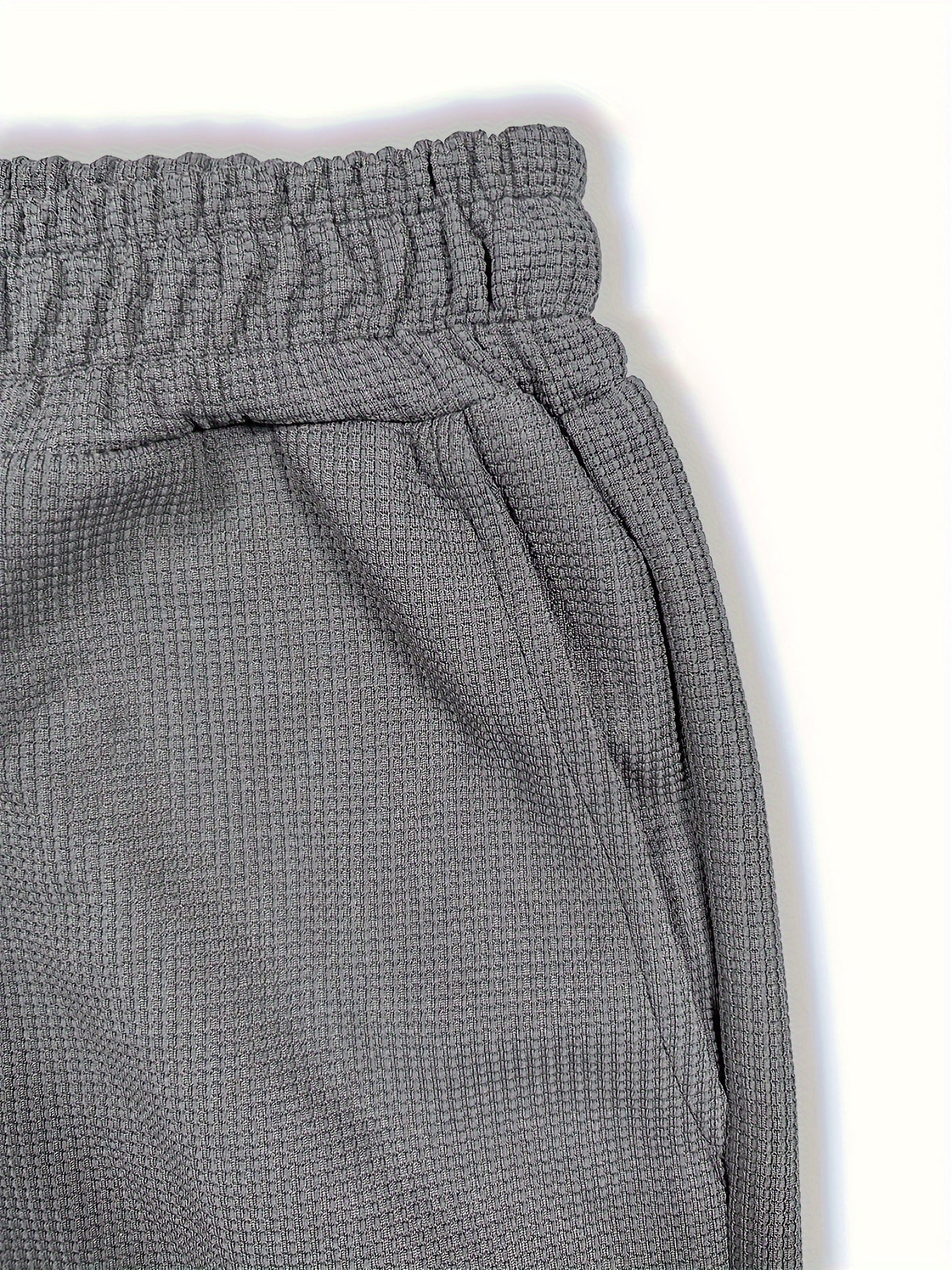 Men's Casual Polyester Sweatsuit Set with Crew Neck Waffle Print Alphabet Pattern Spring Fall Knit Fabric