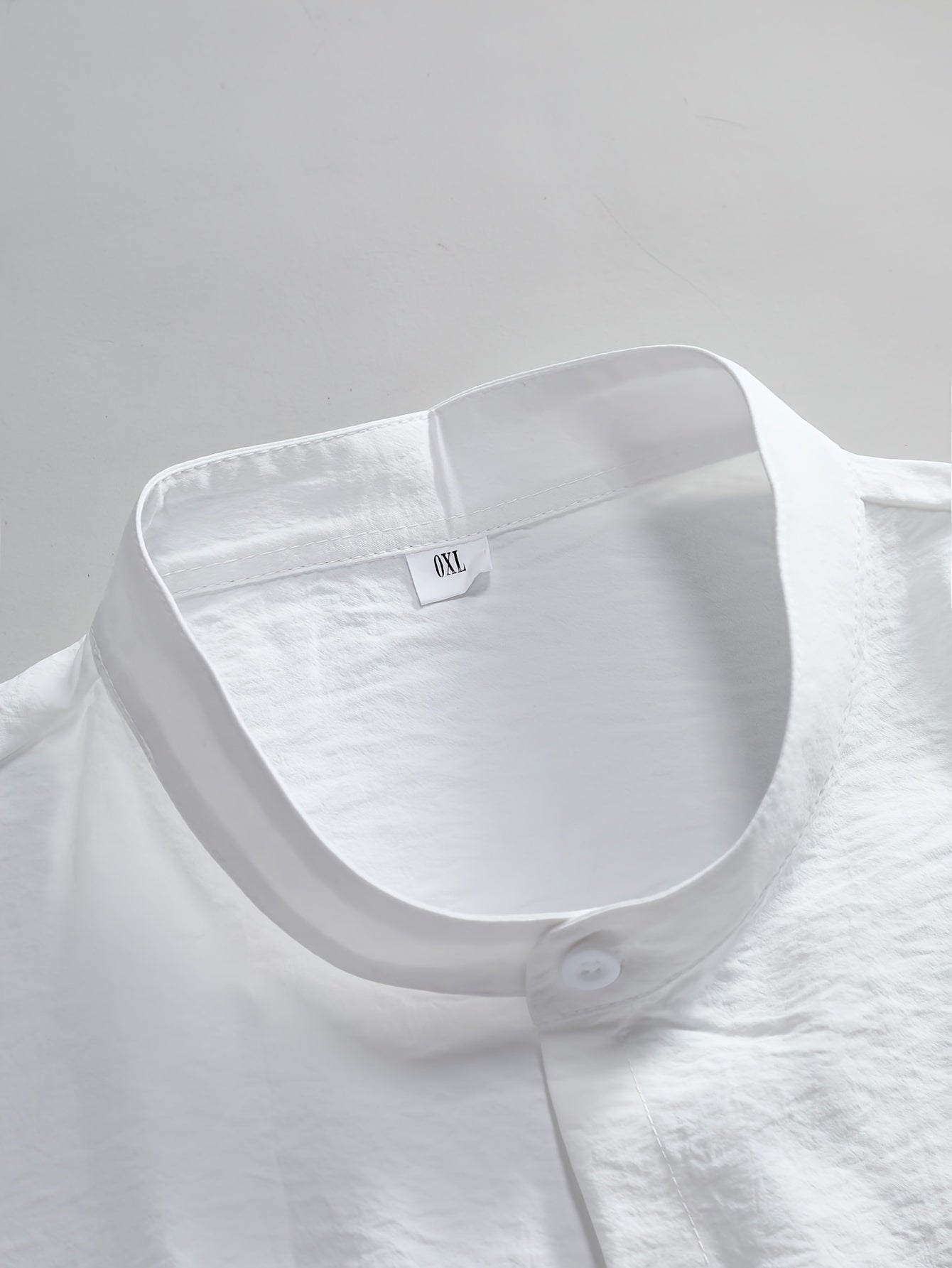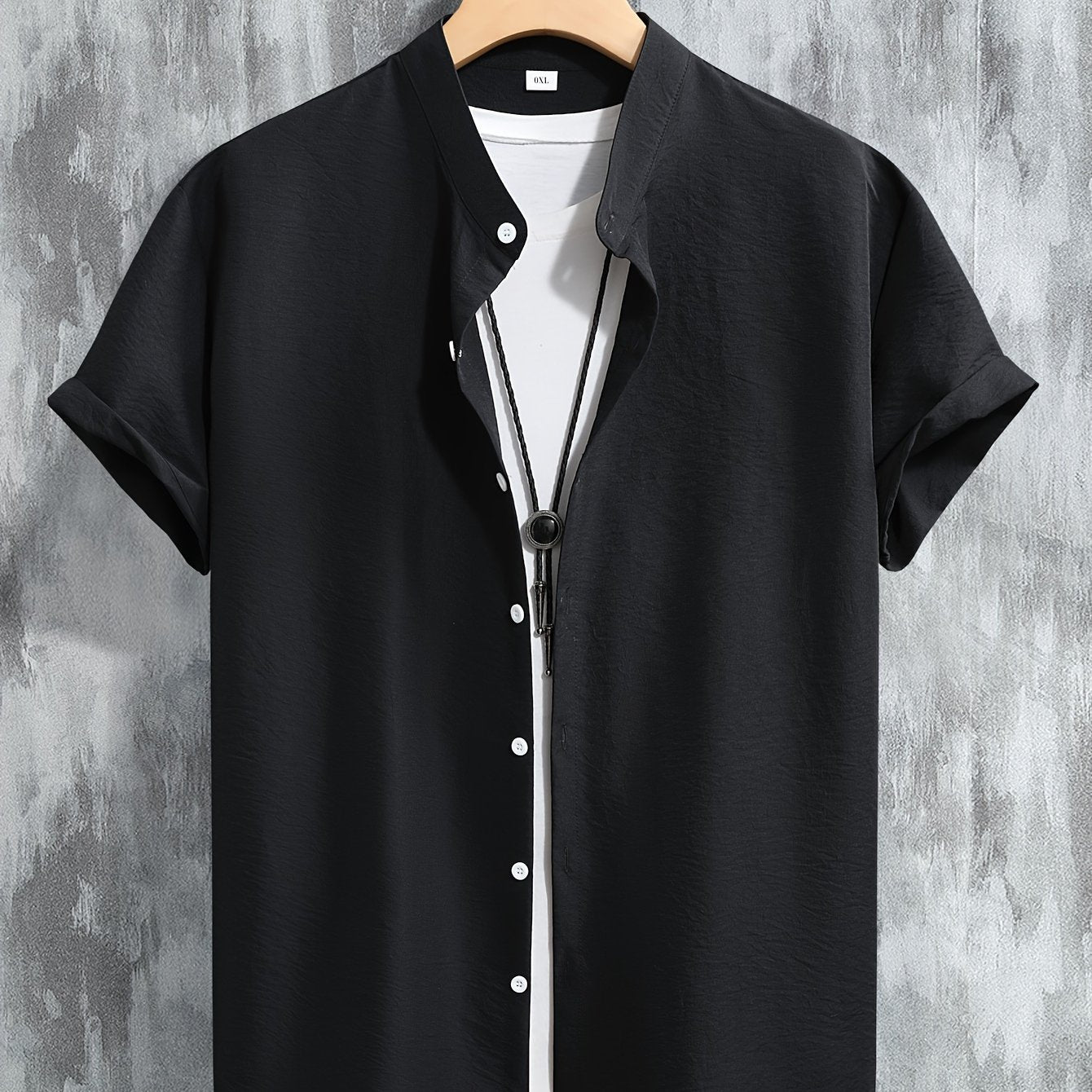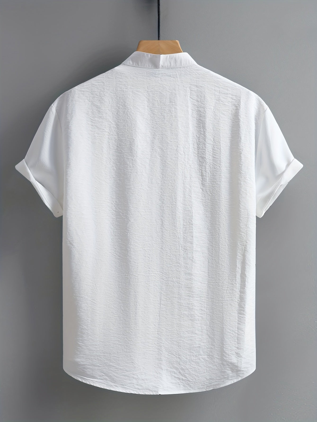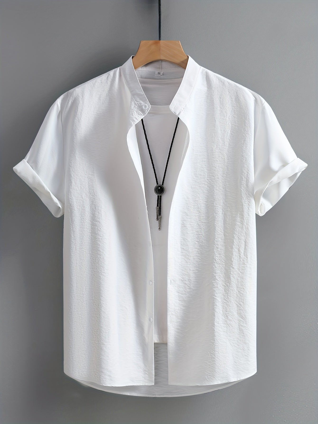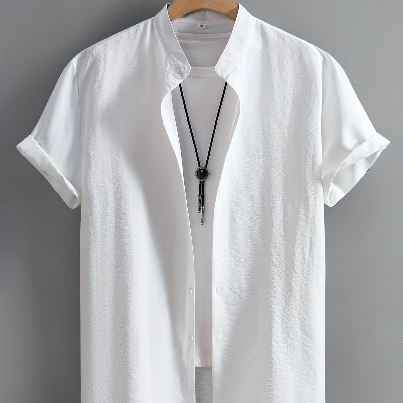 Men's Beige Short Sleeve Dress Shirt Polyester Solid Casual Office Plus Size