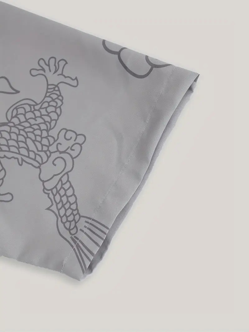 Men's Dragon Print Pajama Set Breathable Polyester Japanese-Inspired Casual Loungewear