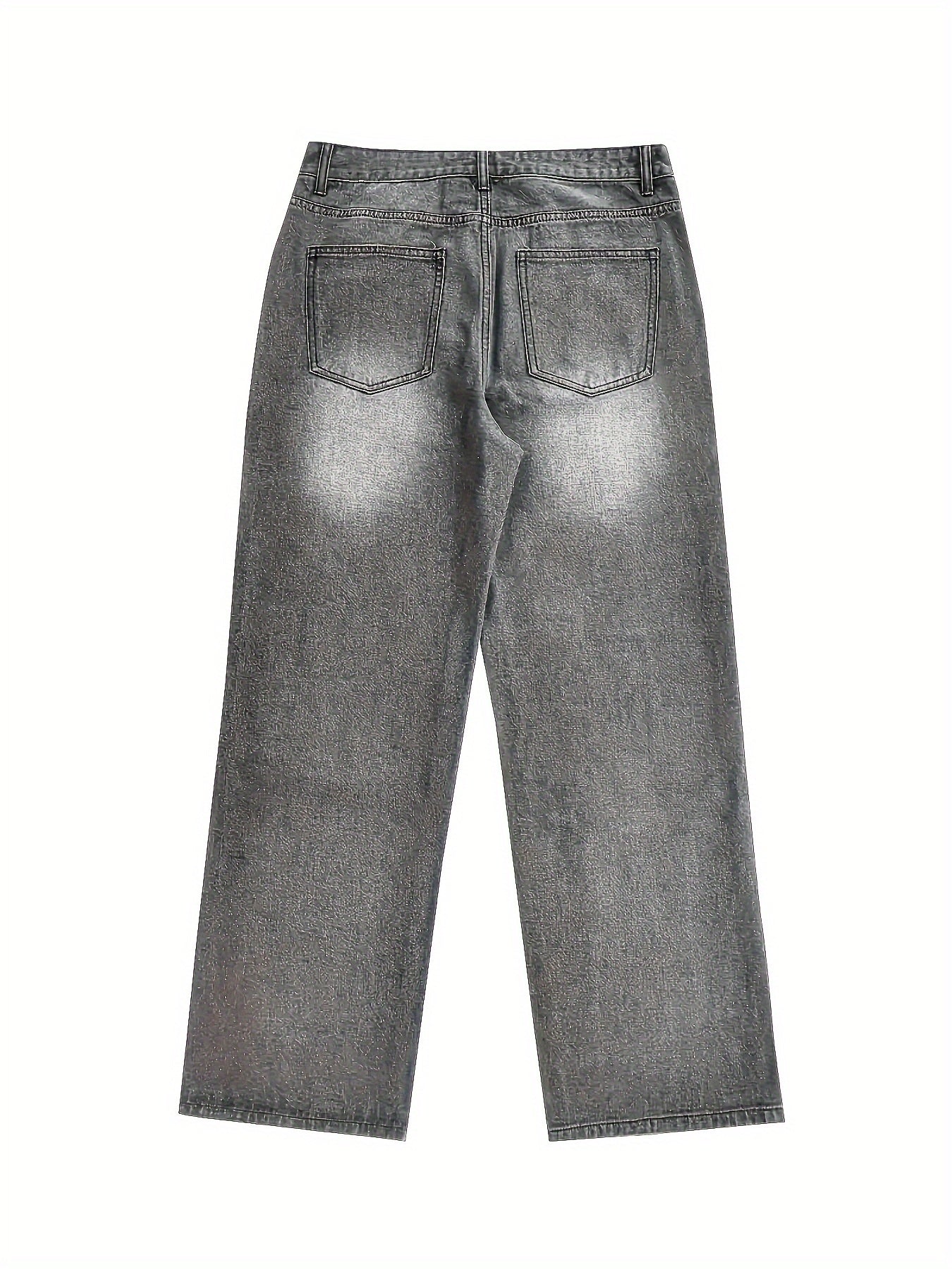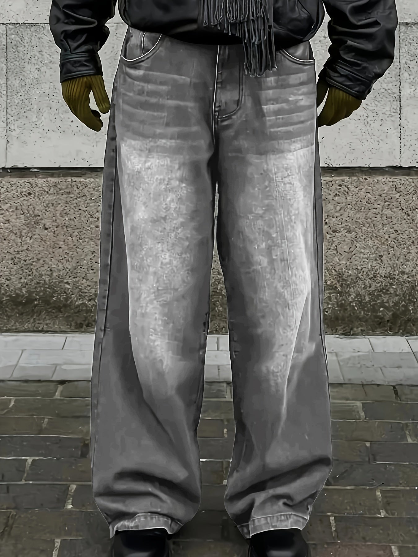 Men's Extra Long Loose Fit Denim Jeans with Geometric Pattern Cotton Blend Non Stretch Fabric Zipper Fly All Season