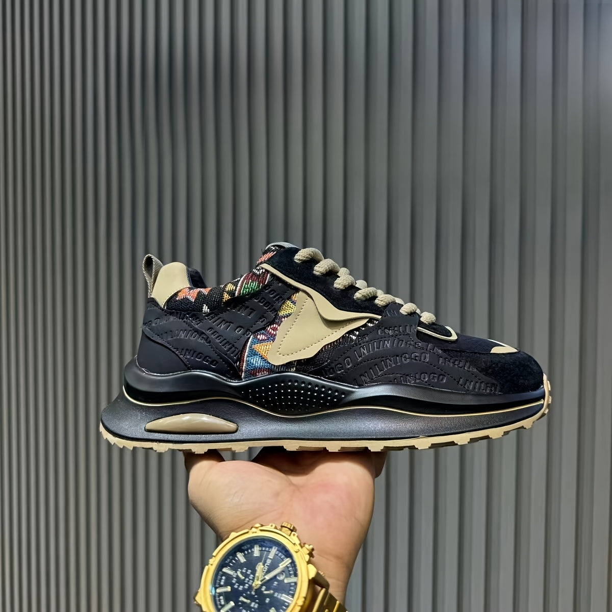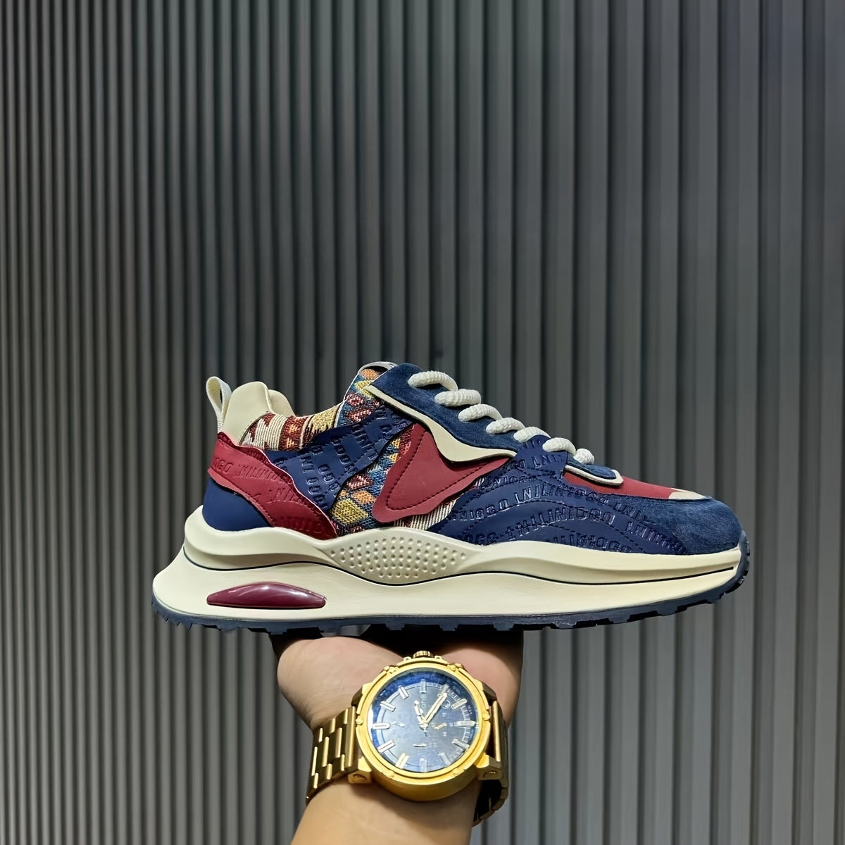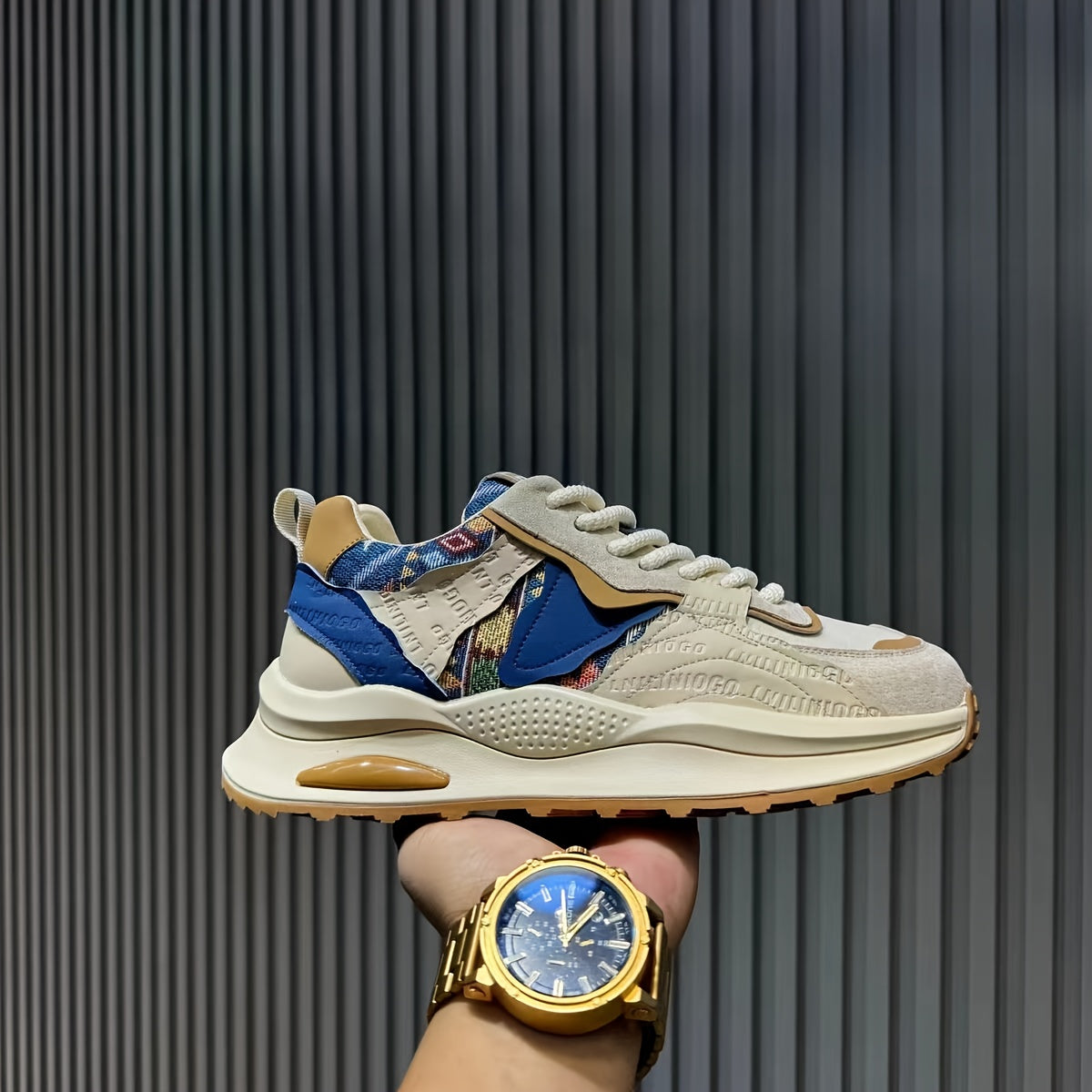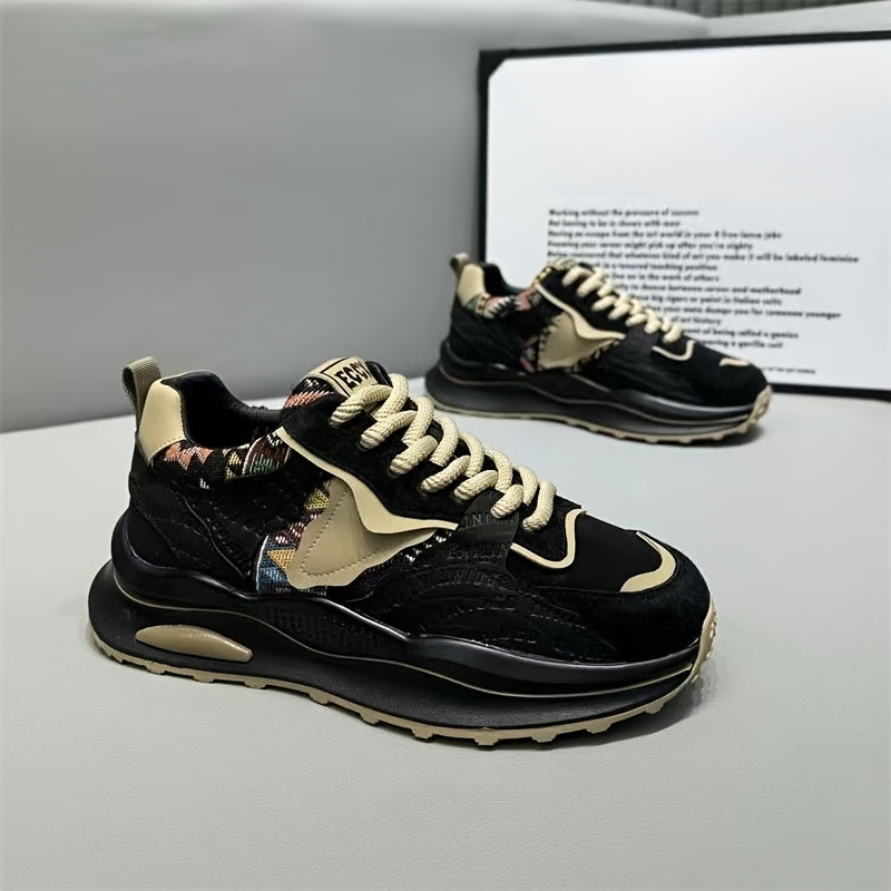 Men's All-Season Casual Sneakers Low Top Round Toe Lace-Up Fabric Faux Leather Rubber Sole