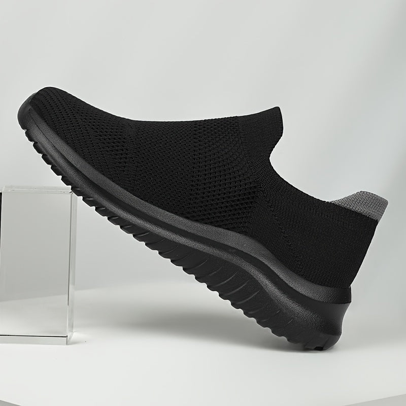 Men's Lightweight Breathable Running Shoes Fabric Slip-On Solid Color Outdoor Sneakers