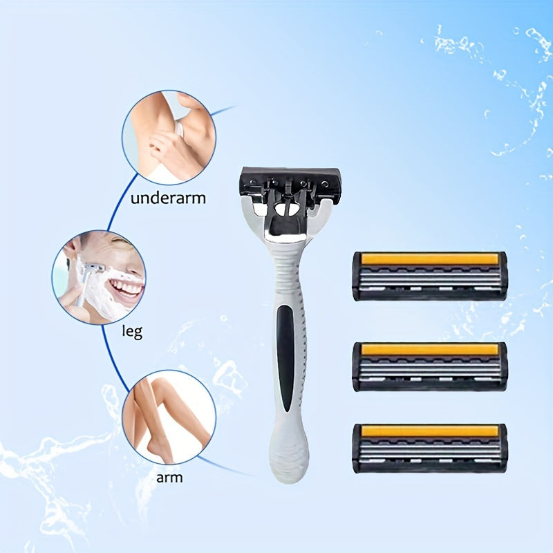 Men's Manual Razor Stainless Steel Blades Non-Slip Handle for Beard and Mustache Grooming