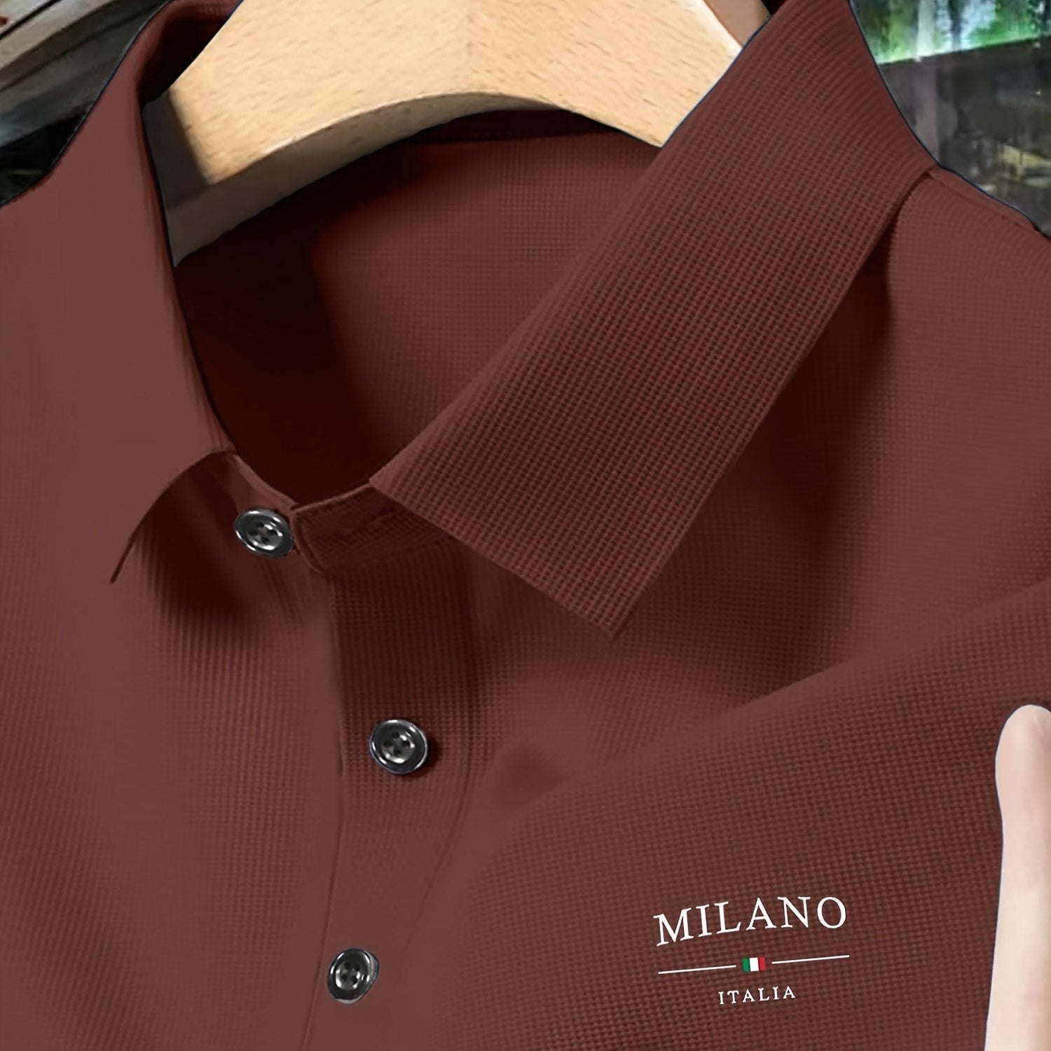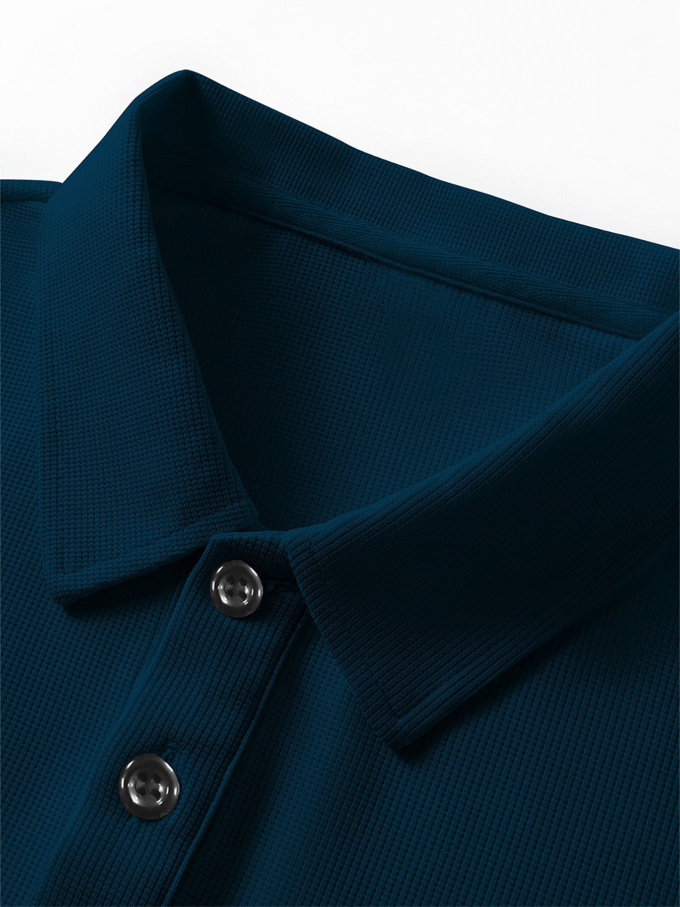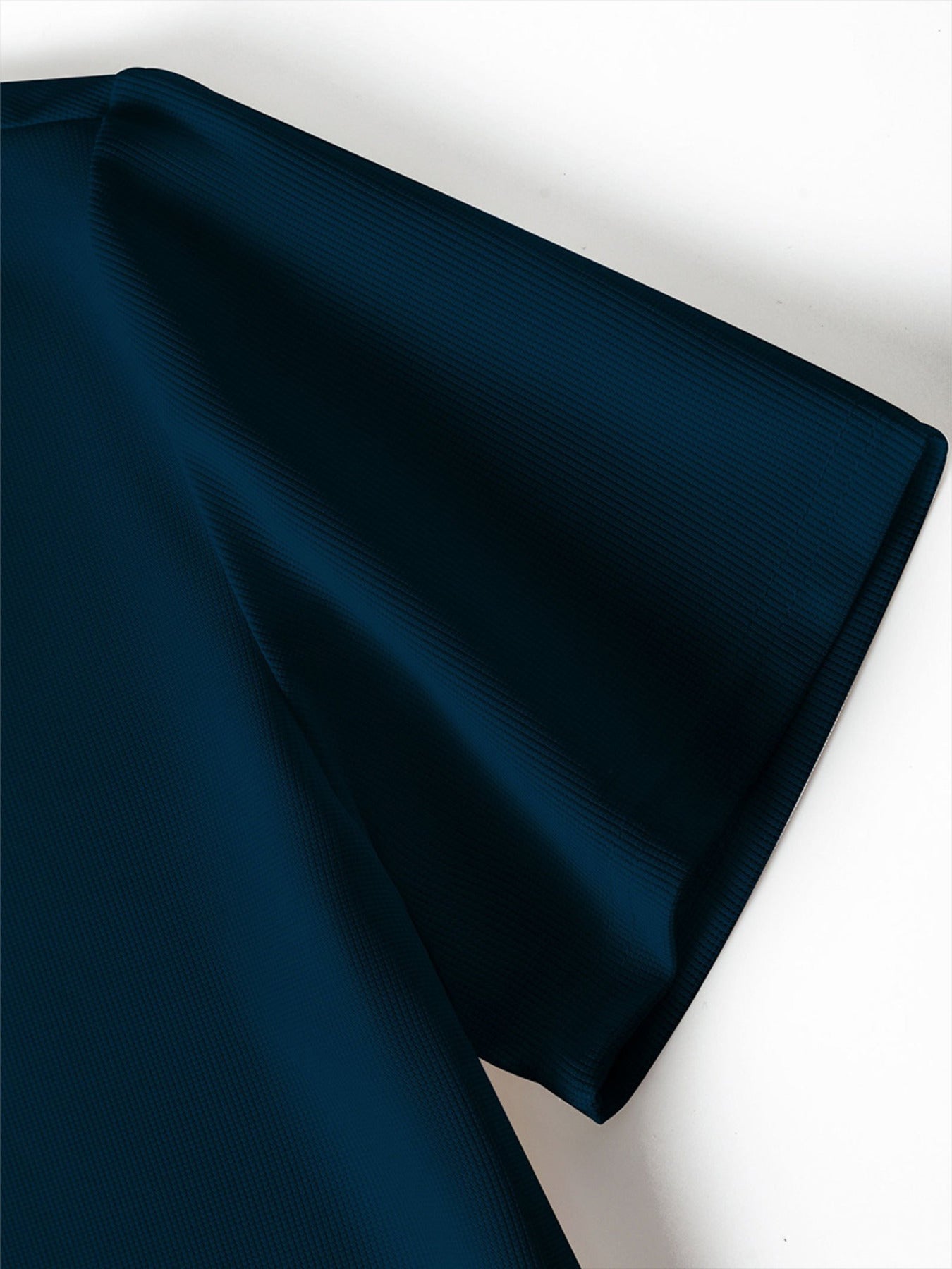 Men's Dark Gray Waffle Knit Short Sleeve Shirt with Button Collar for Summer Business Casual