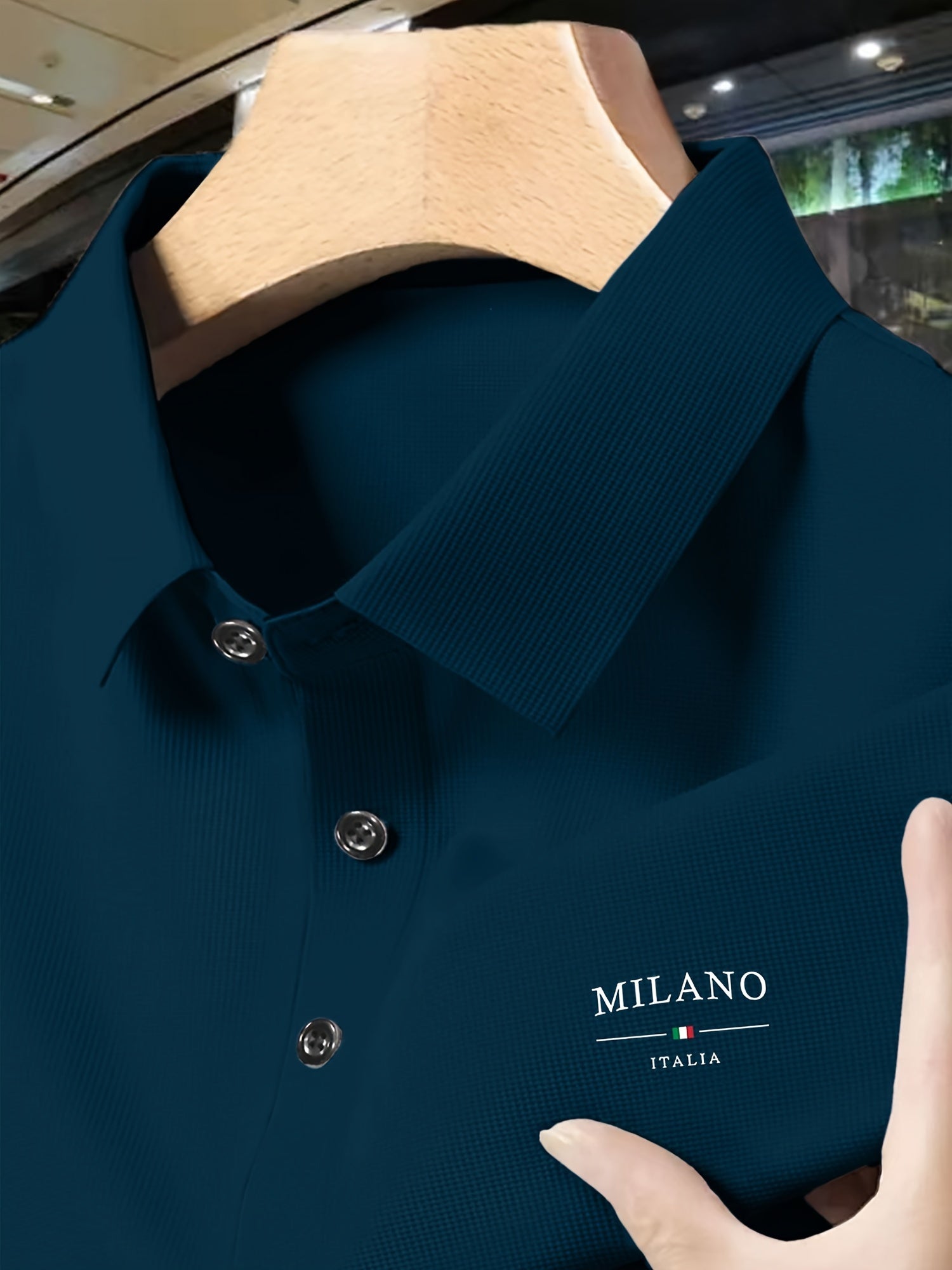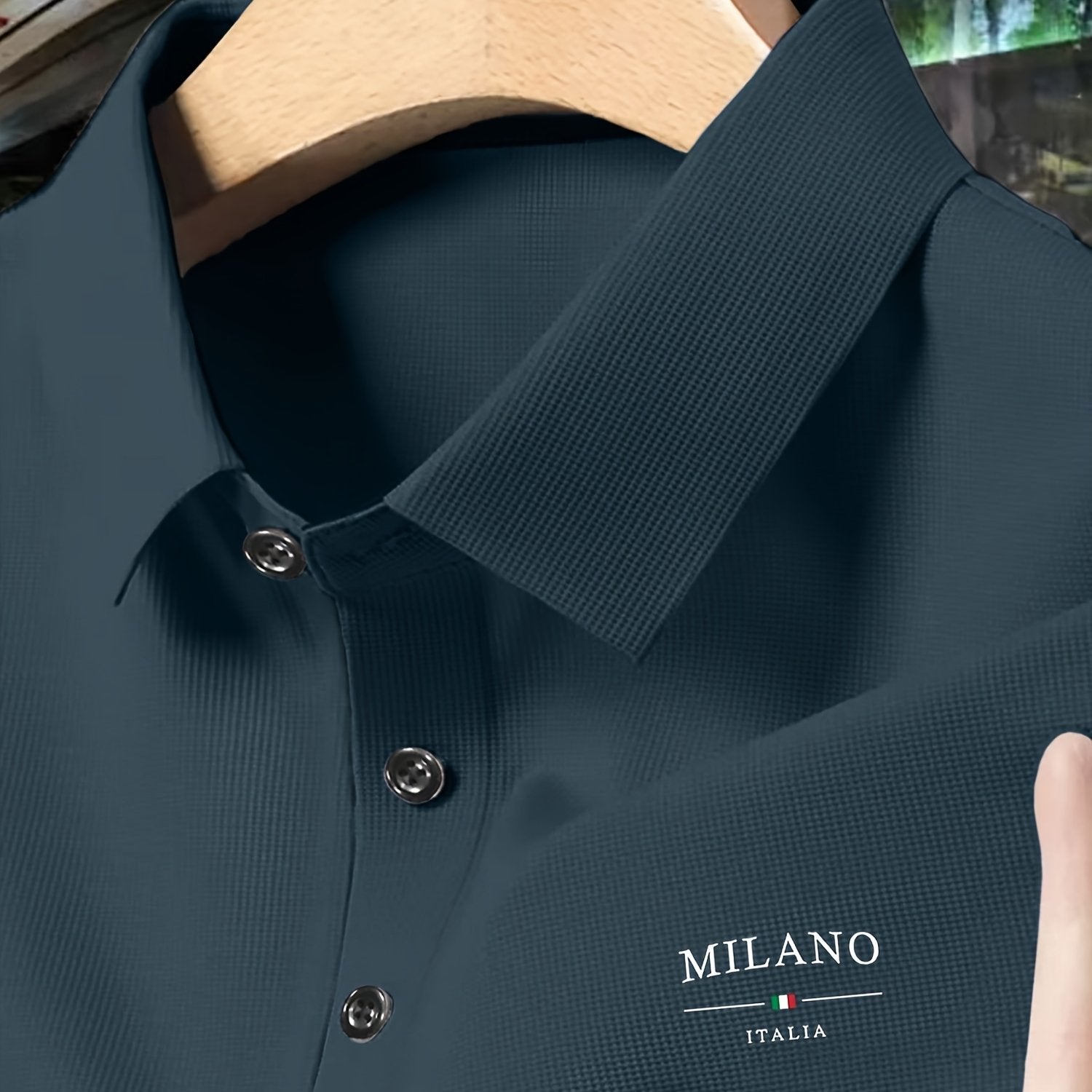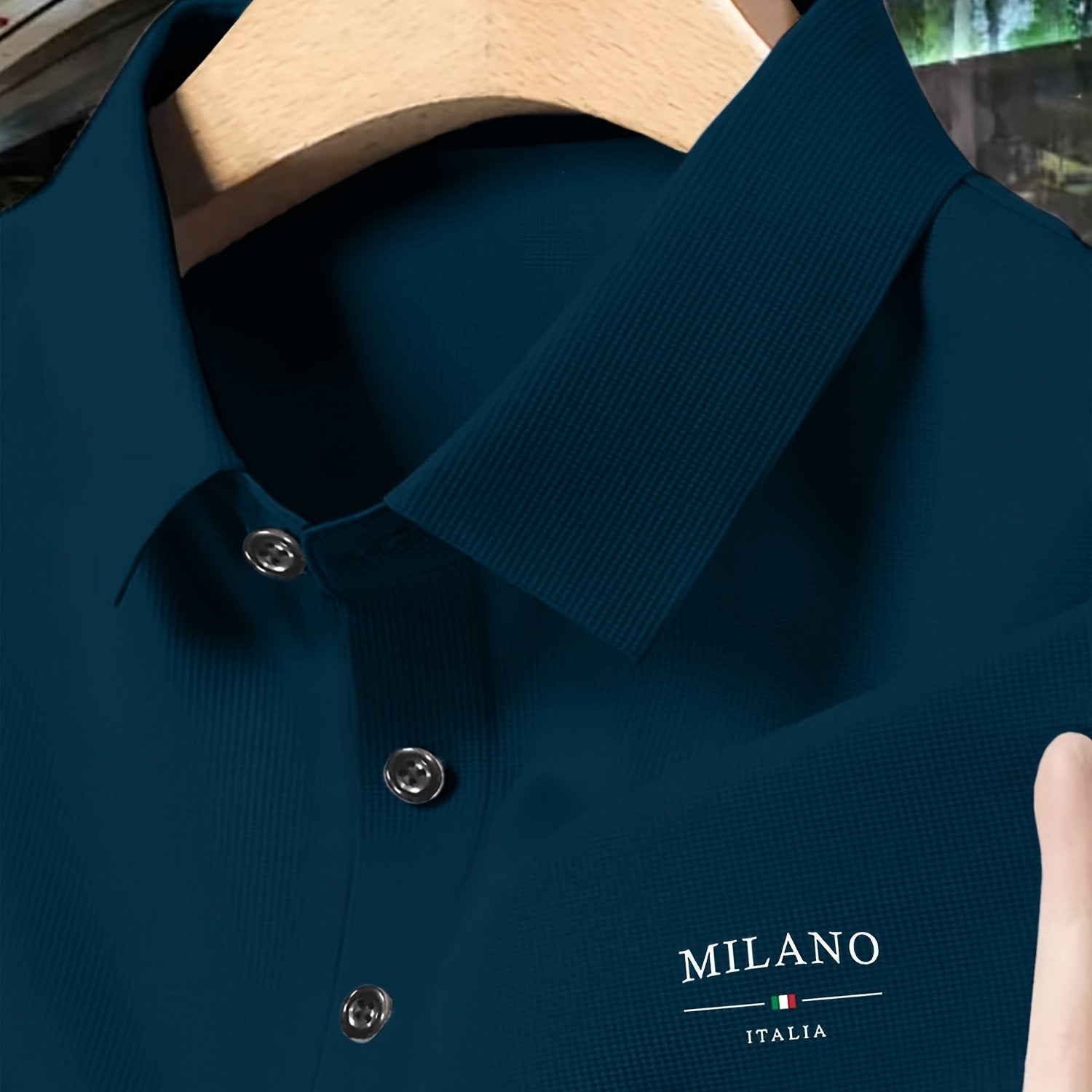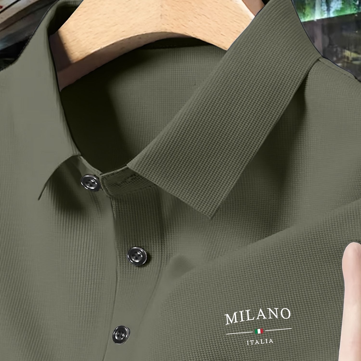 Men's Dark Gray Waffle Knit Short Sleeve Shirt with Button Collar for Summer Business Casual
