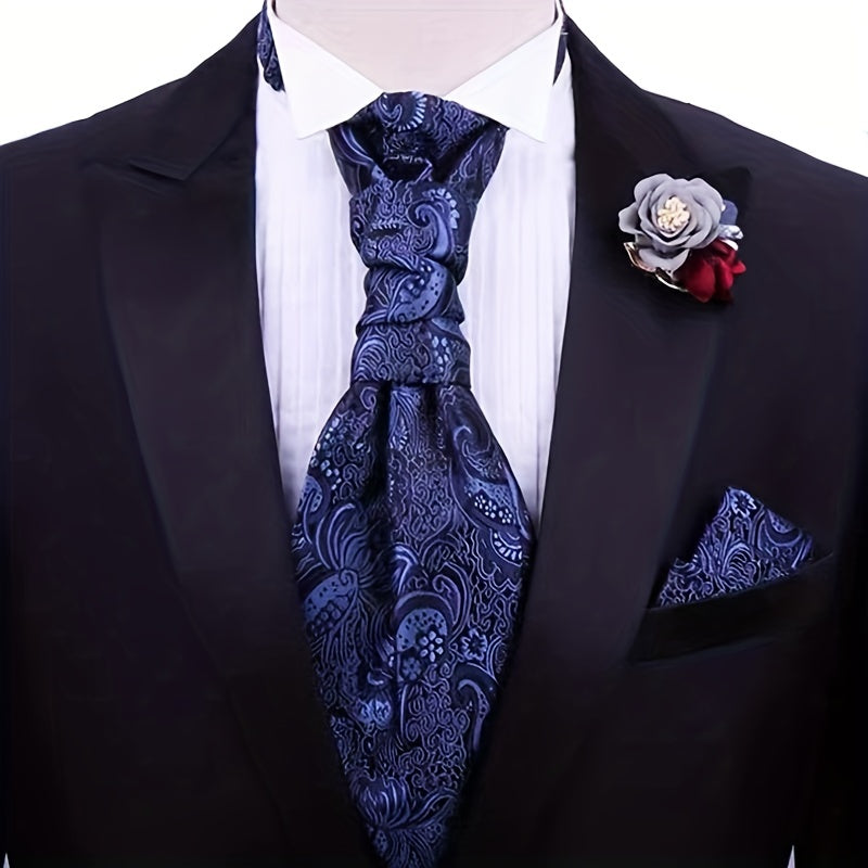 Men's Paisley Pattern Necktie and Pocket Square Set for Gifting