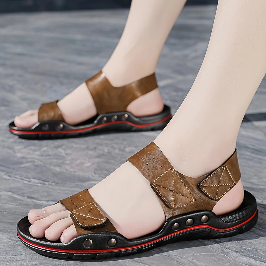 Men's Plus Size Solid Color PU Sandals with Hook-and-Loop Closure Rubber Sole