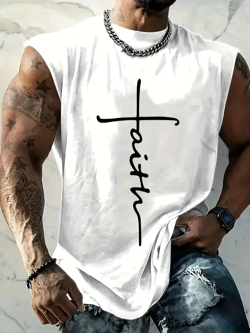 Men's Plus Size Gradient Faith Print Tank Top Black to Teal Summer Fitness Casual Breathable Stretchy