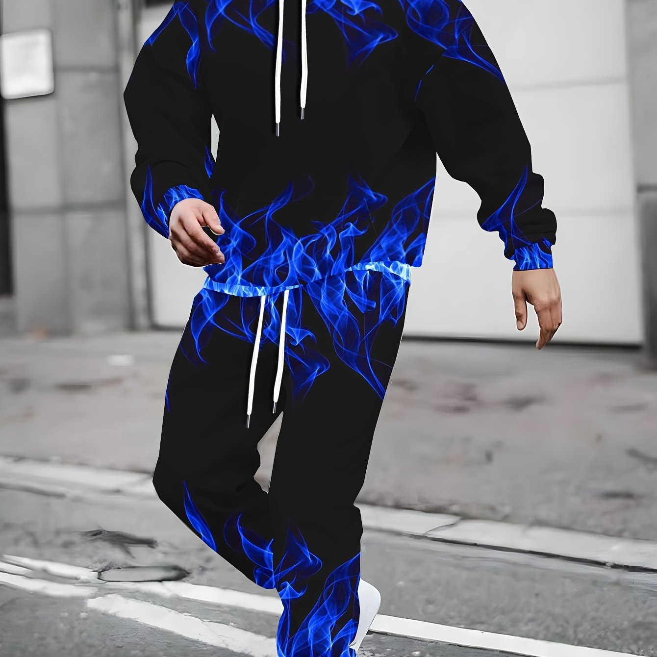 Men's Plus Size Hoodie Set All-Over Print Knit Polyester Casual Sports Loungewear
