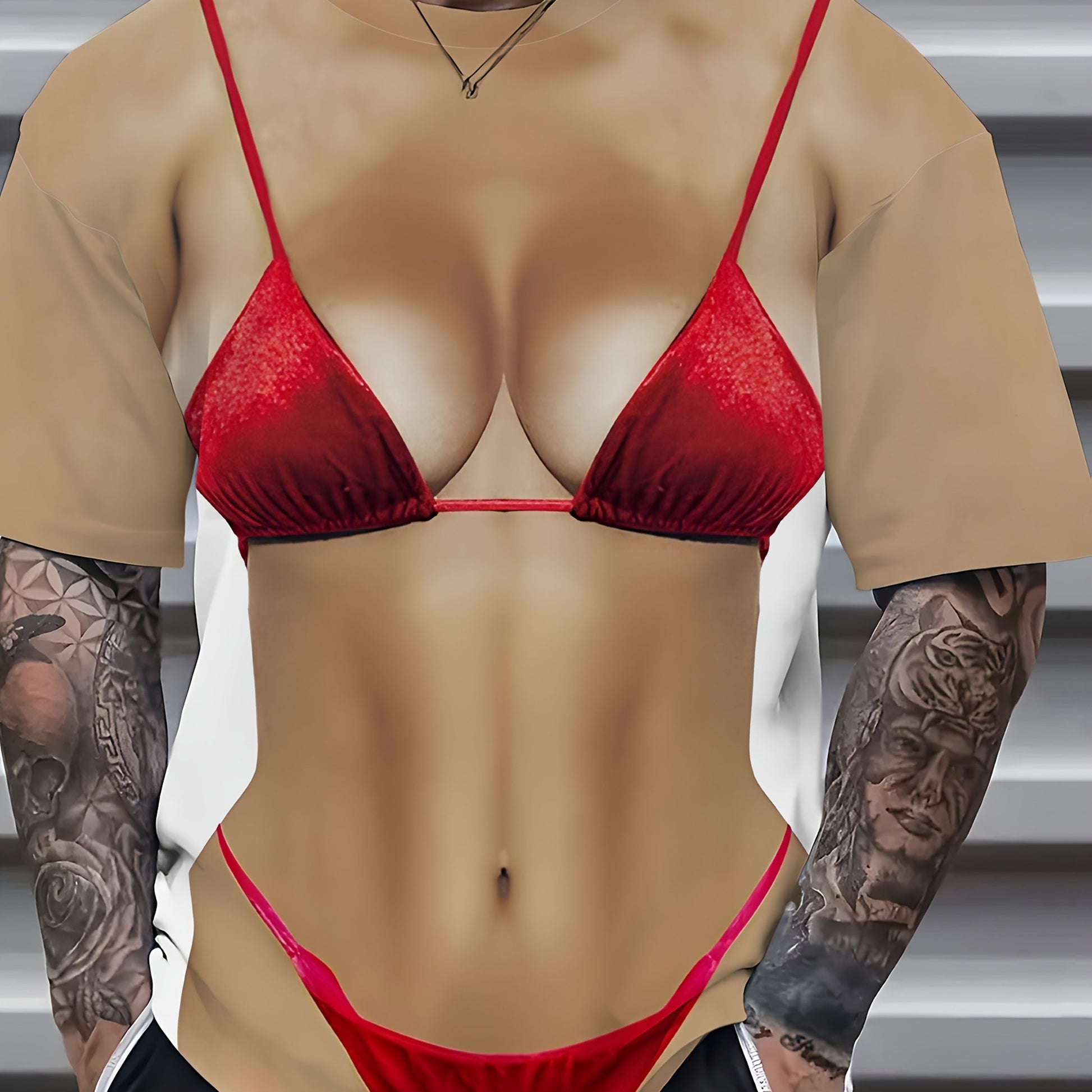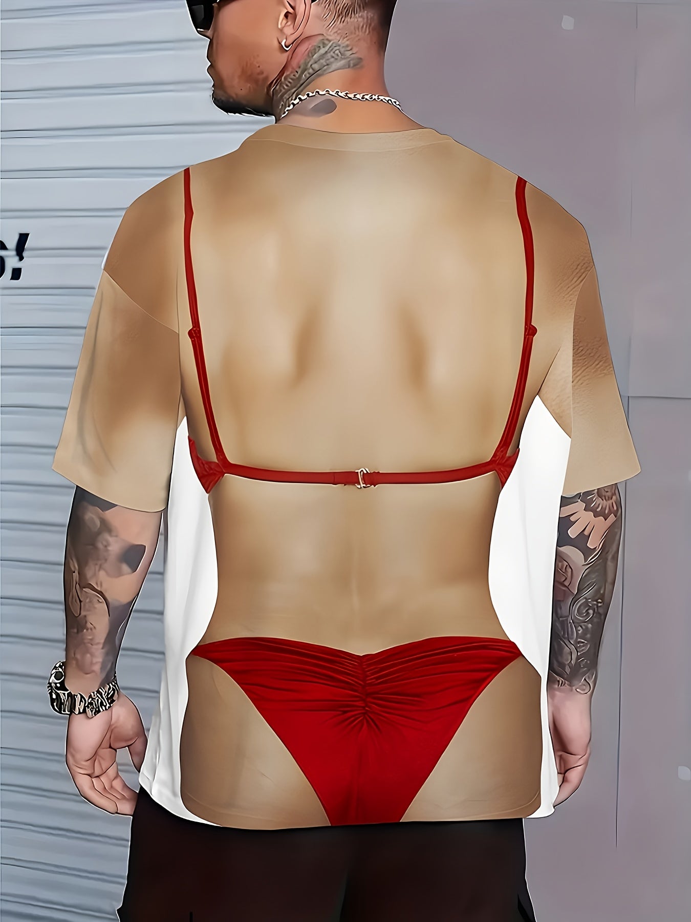 Men's Plus Size Summer T-Shirt with Geometric Print Crew Neck Regular Fit